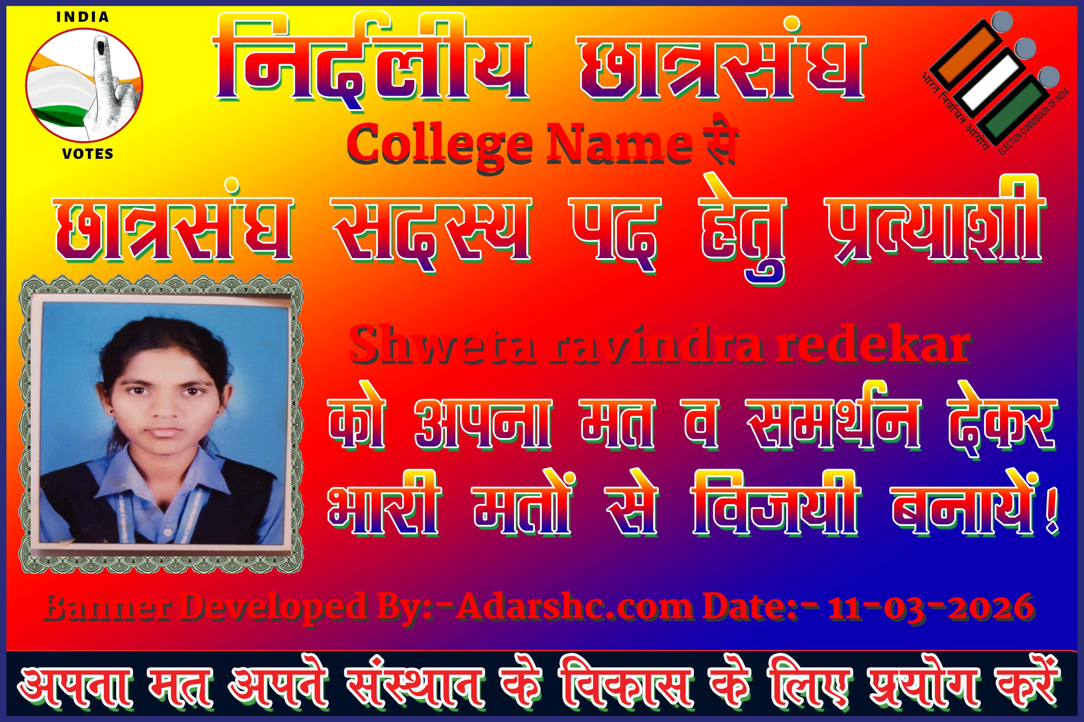 Note:- ईस बार के छात्र संघ चुनाव में कृप्या हमें जरुर Support करे, इसके लिये हम आपके प्रति आभार व्यक्त करते है |