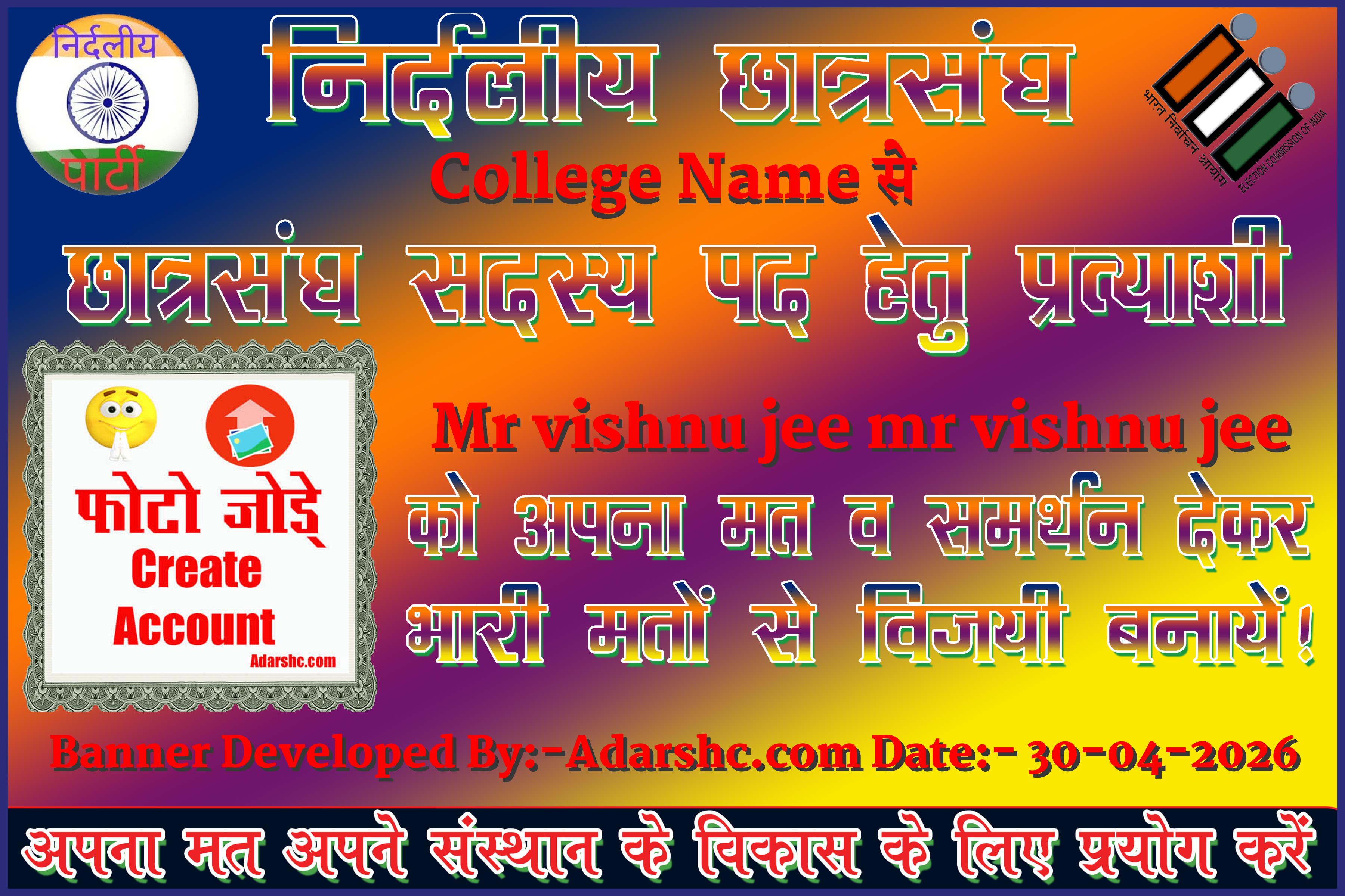 Note:- ईस बार के छात्र संघ चुनाव में कृप्या हमें जरुर Support करे, इसके लिये हम आपके प्रति आभार व्यक्त करते है |