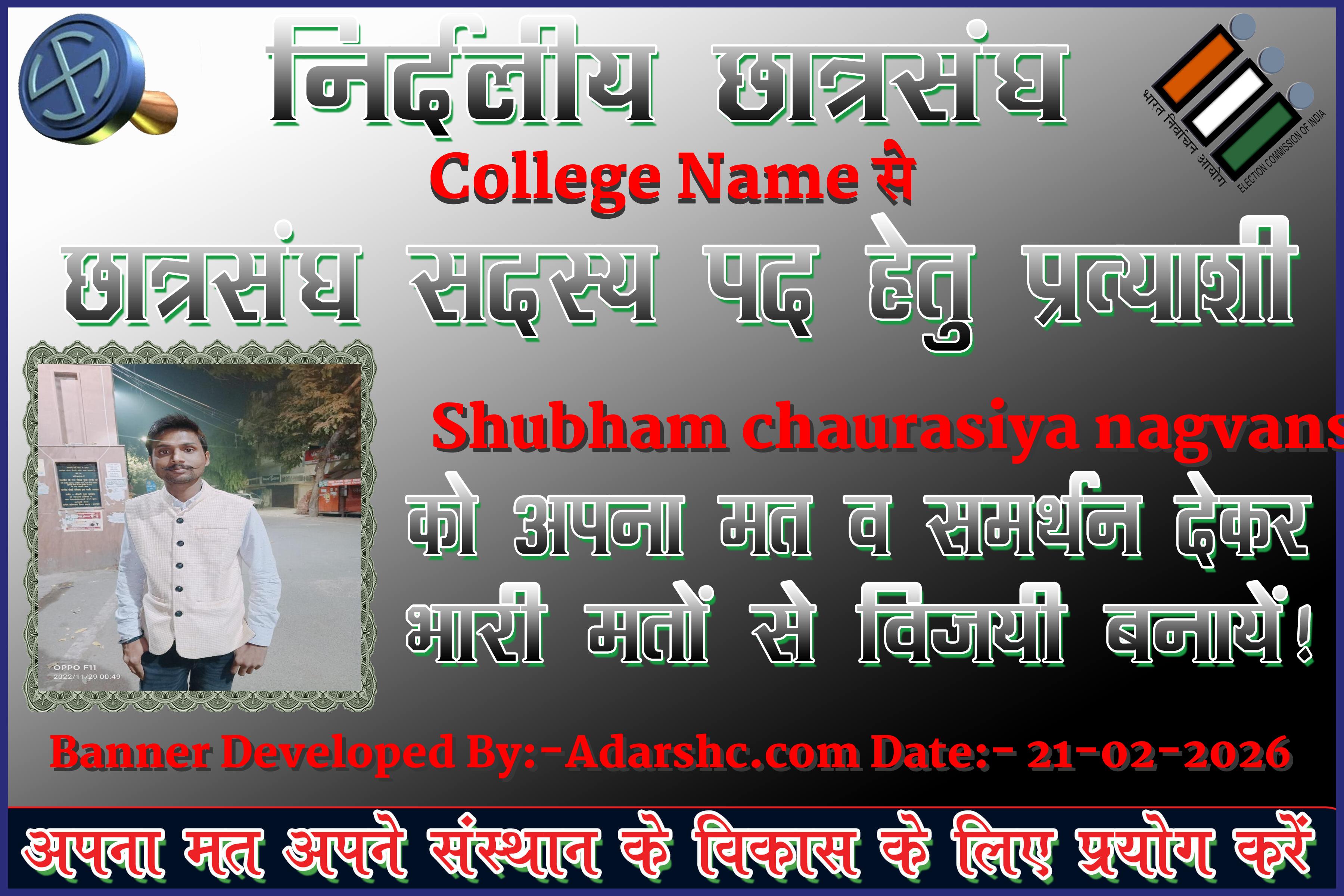 Note:- ईस बार के छात्र संघ चुनाव में कृप्या हमें जरुर Support करे, इसके लिये हम आपके प्रति आभार व्यक्त करते है |