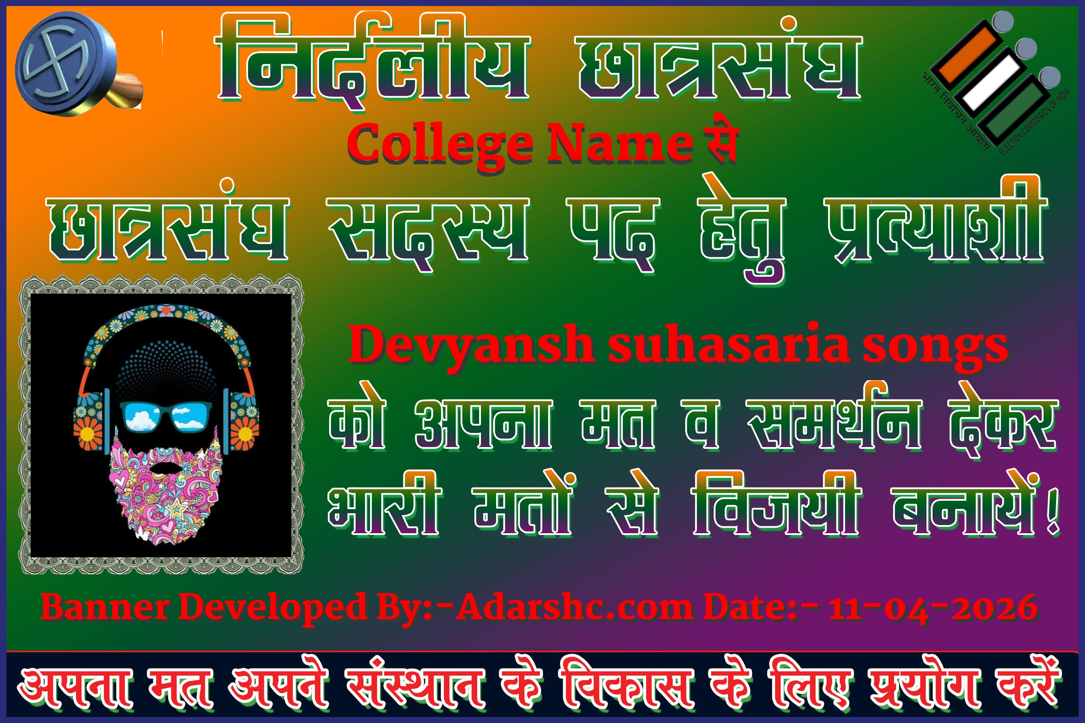 Note:- ईस बार के छात्र संघ चुनाव में कृप्या हमें जरुर Support करे, इसके लिये हम आपके प्रति आभार व्यक्त करते है |