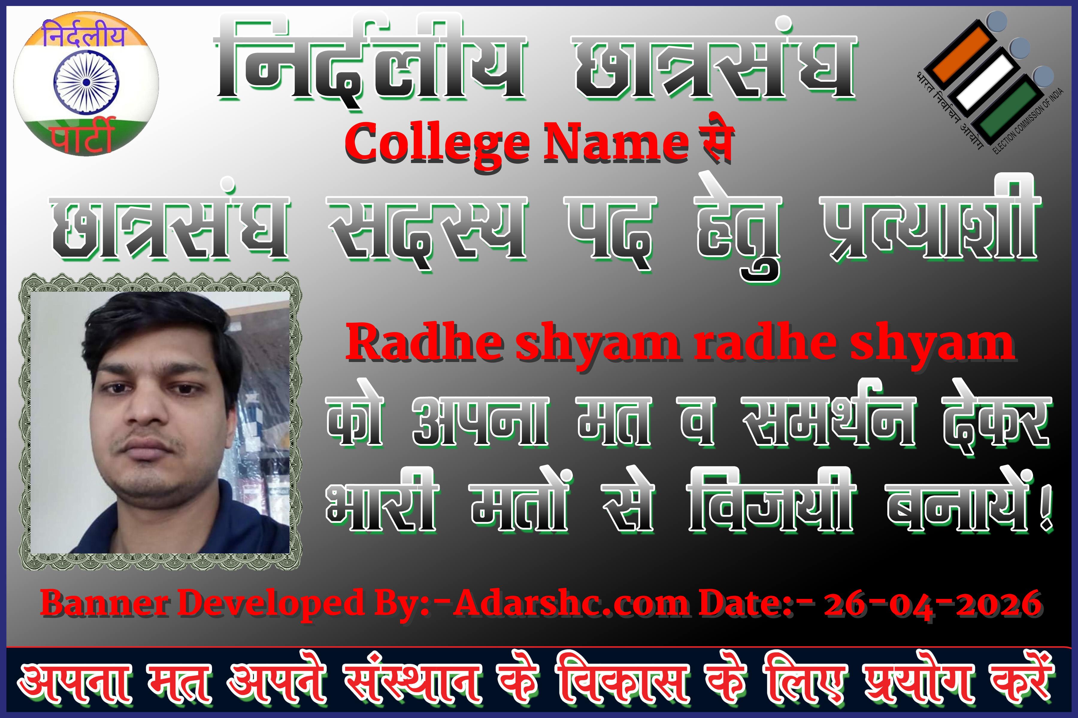 Note:- ईस बार के छात्र संघ चुनाव में कृप्या हमें जरुर Support करे, इसके लिये हम आपके प्रति आभार व्यक्त करते है |