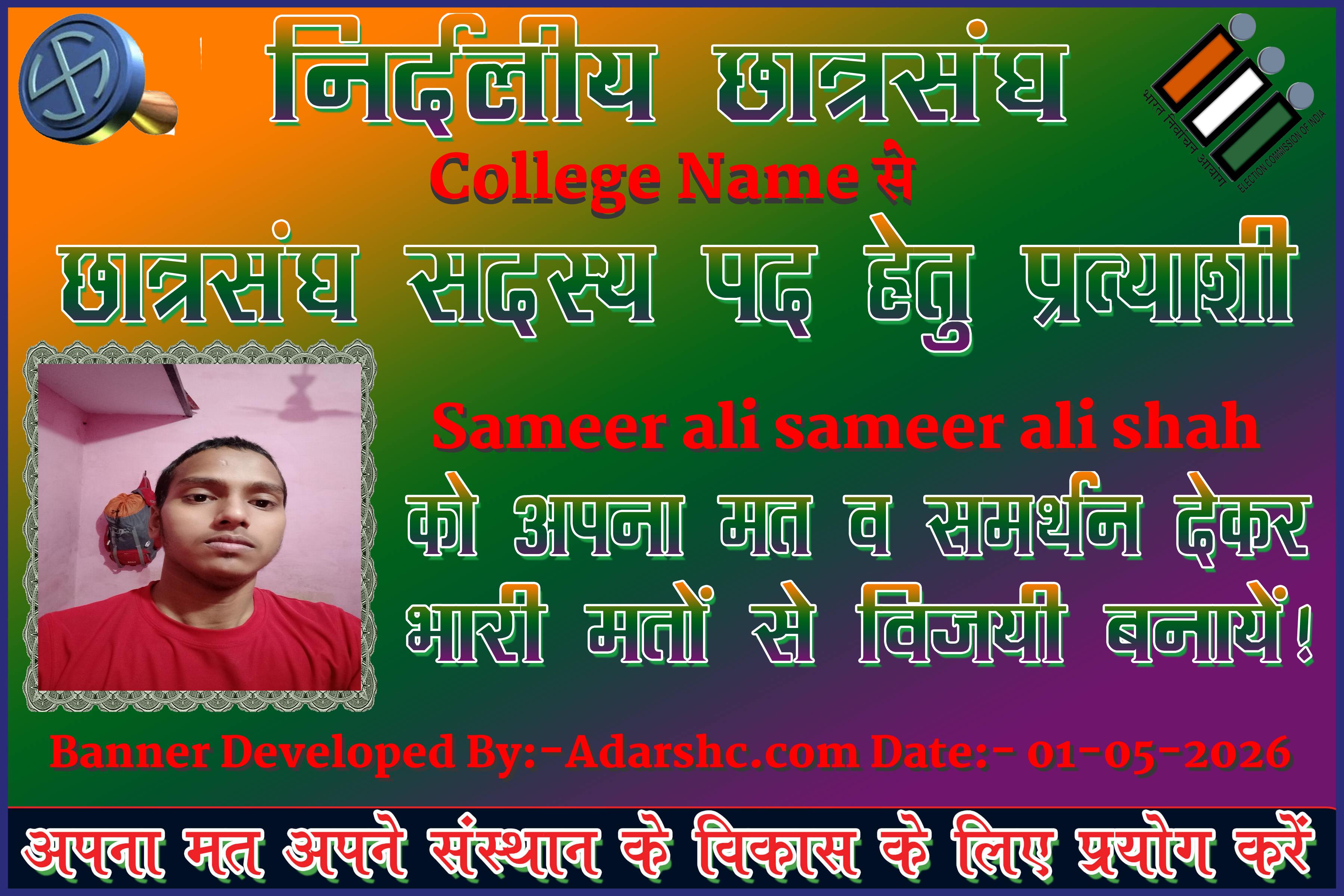 Note:- ईस बार के छात्र संघ चुनाव में कृप्या हमें जरुर Support करे, इसके लिये हम आपके प्रति आभार व्यक्त करते है |