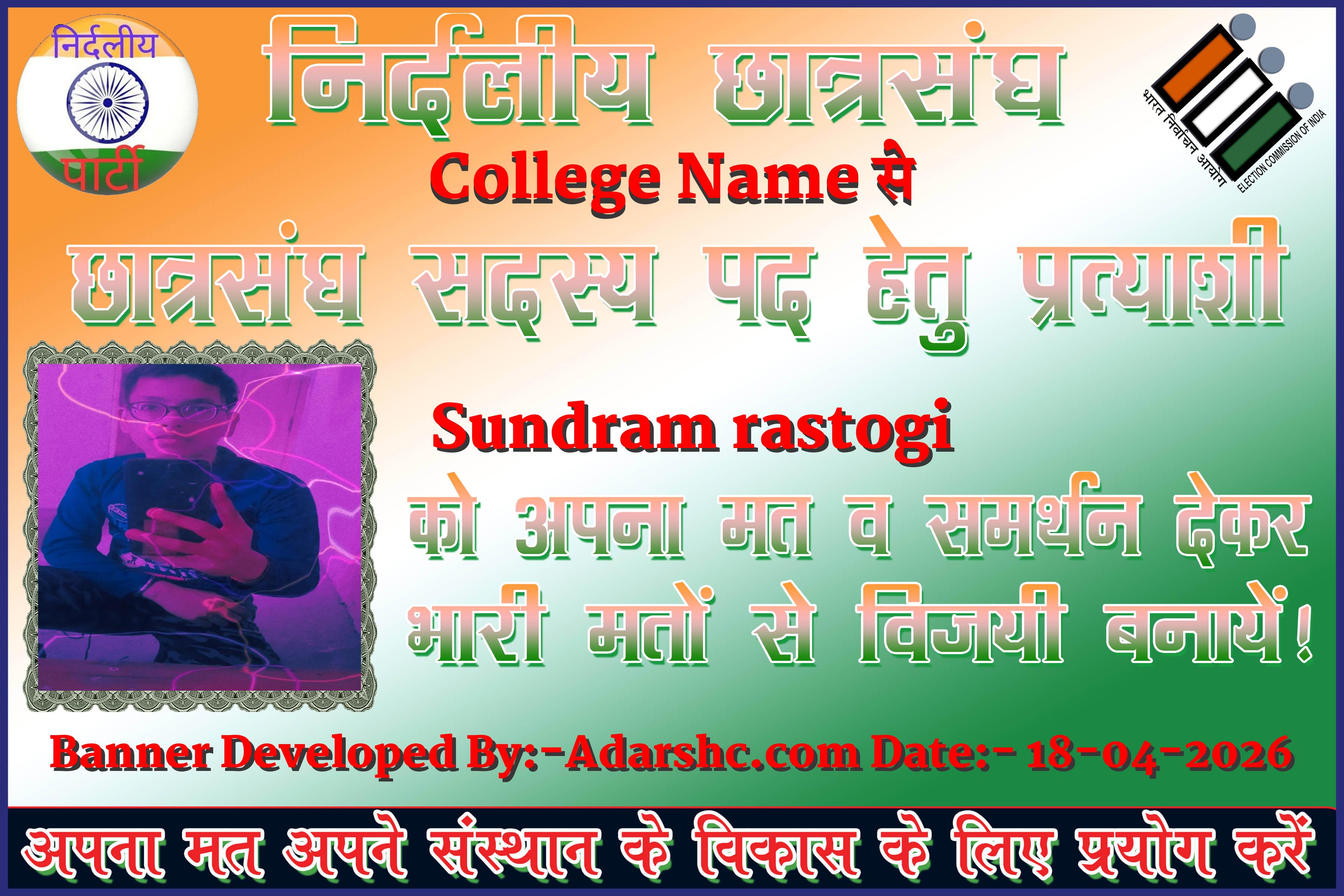 ☆ नमस्कार दोस्तों मेरा नाम Sundram rastogi है, मैं College Name का छात्र/छात्रा हूँ,