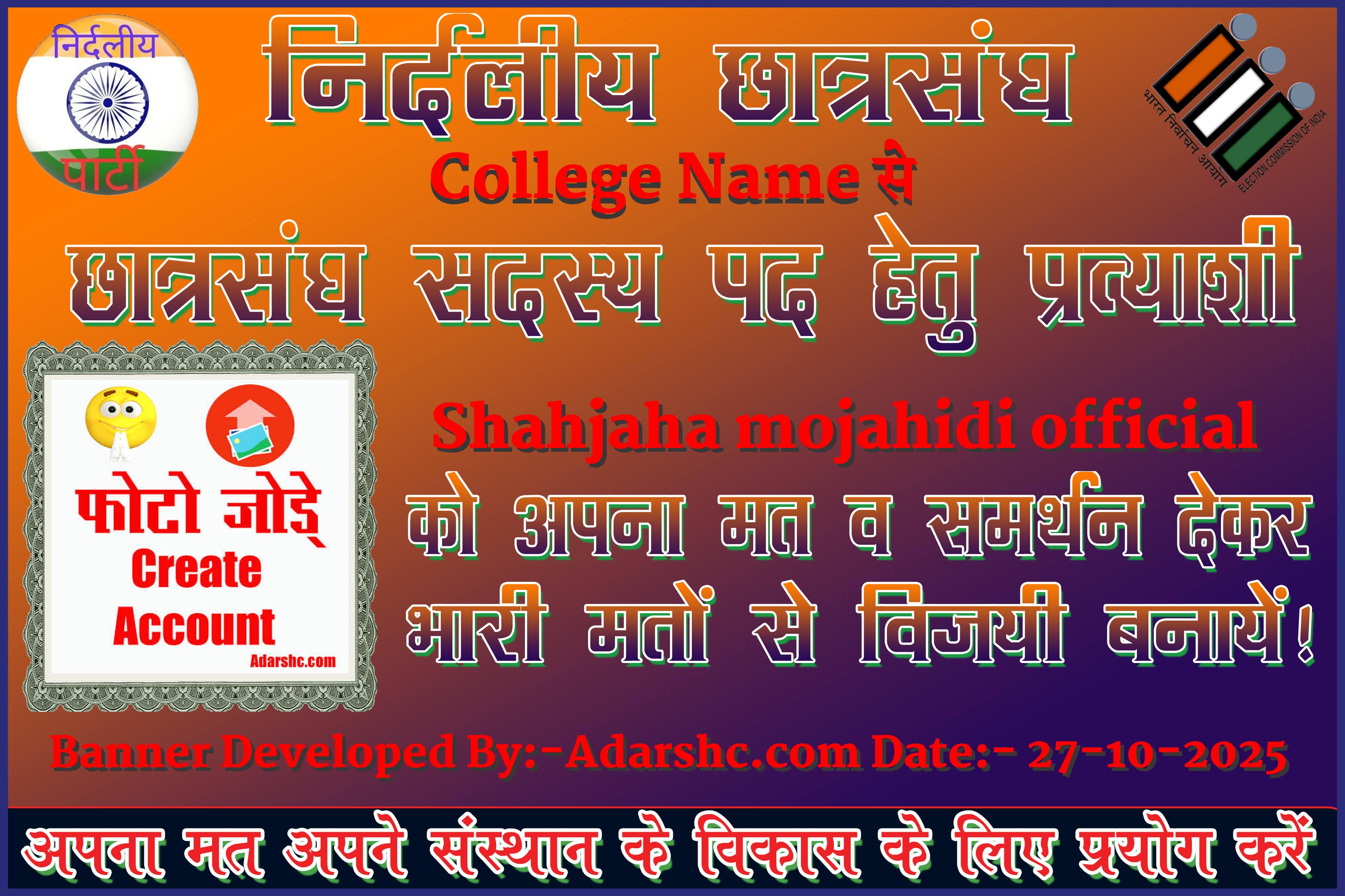 Note:- ईस बार के छात्र संघ चुनाव में कृप्या हमें जरुर Support करे, इसके लिये हम आपके प्रति आभार व्यक्त करते है |