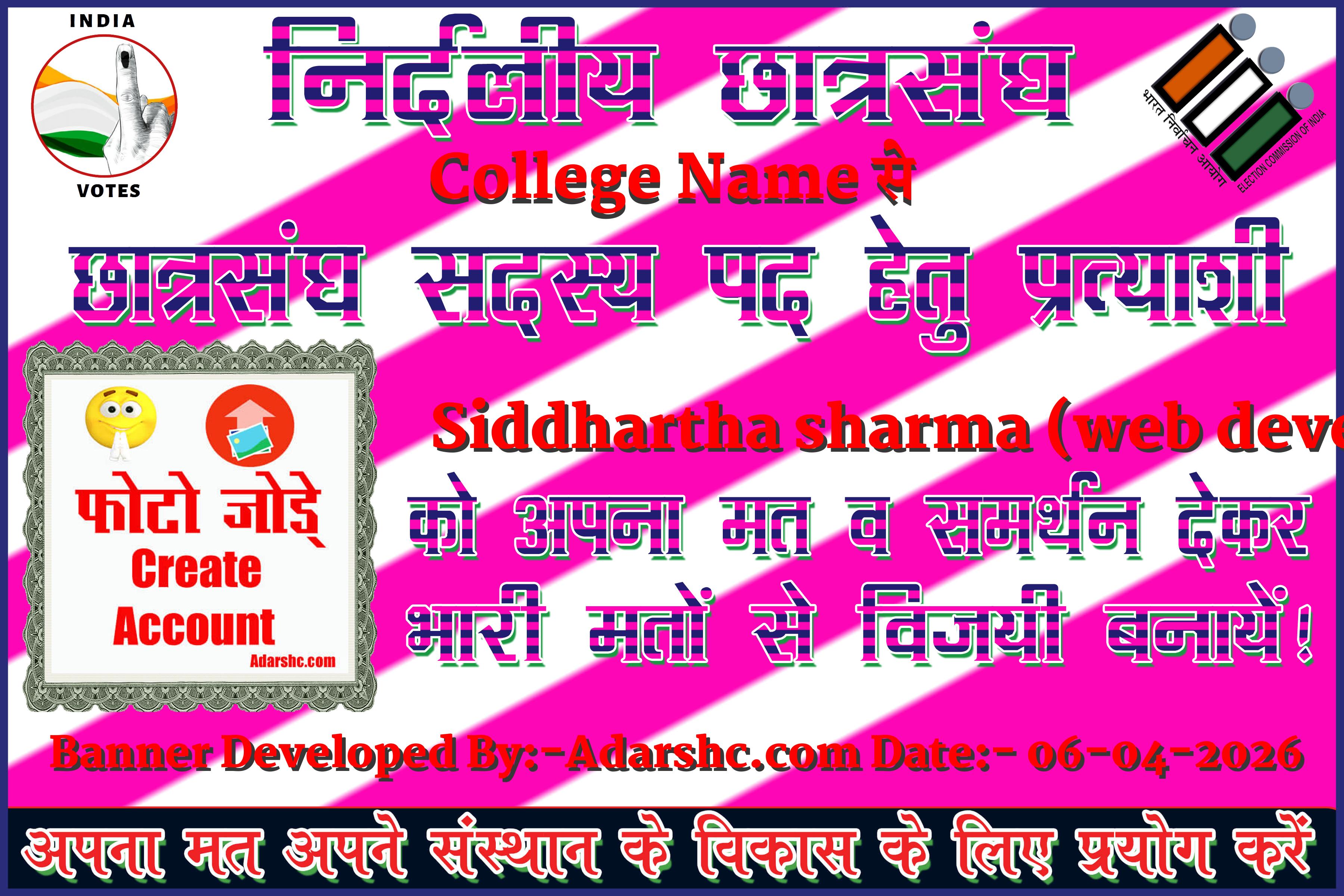 Note:- ईस बार के छात्र संघ चुनाव में कृप्या हमें जरुर Support करे, इसके लिये हम आपके प्रति आभार व्यक्त करते है |