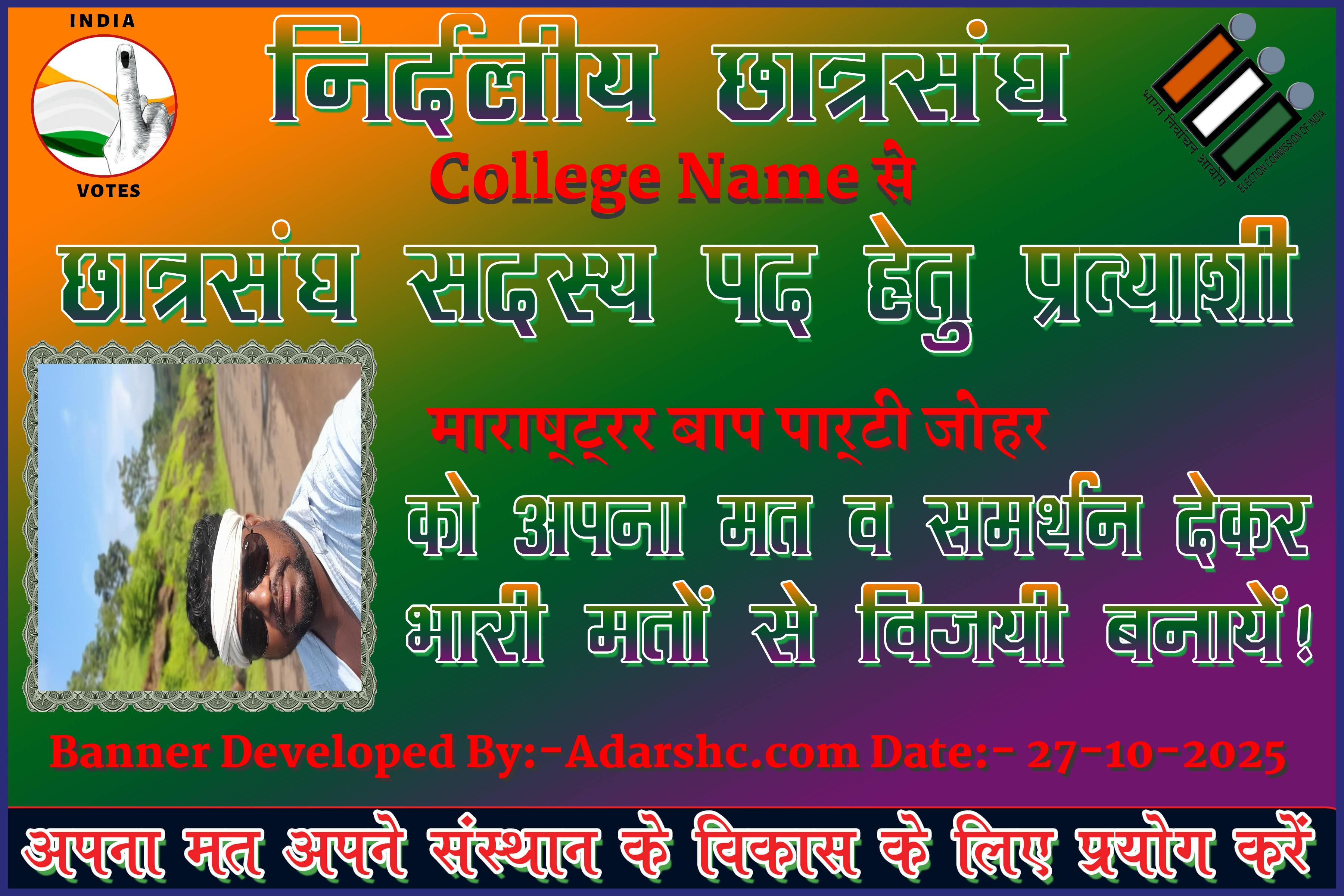 Note:- ईस बार के छात्र संघ चुनाव में कृप्या हमें जरुर Support करे, इसके लिये हम आपके प्रति आभार व्यक्त करते है |