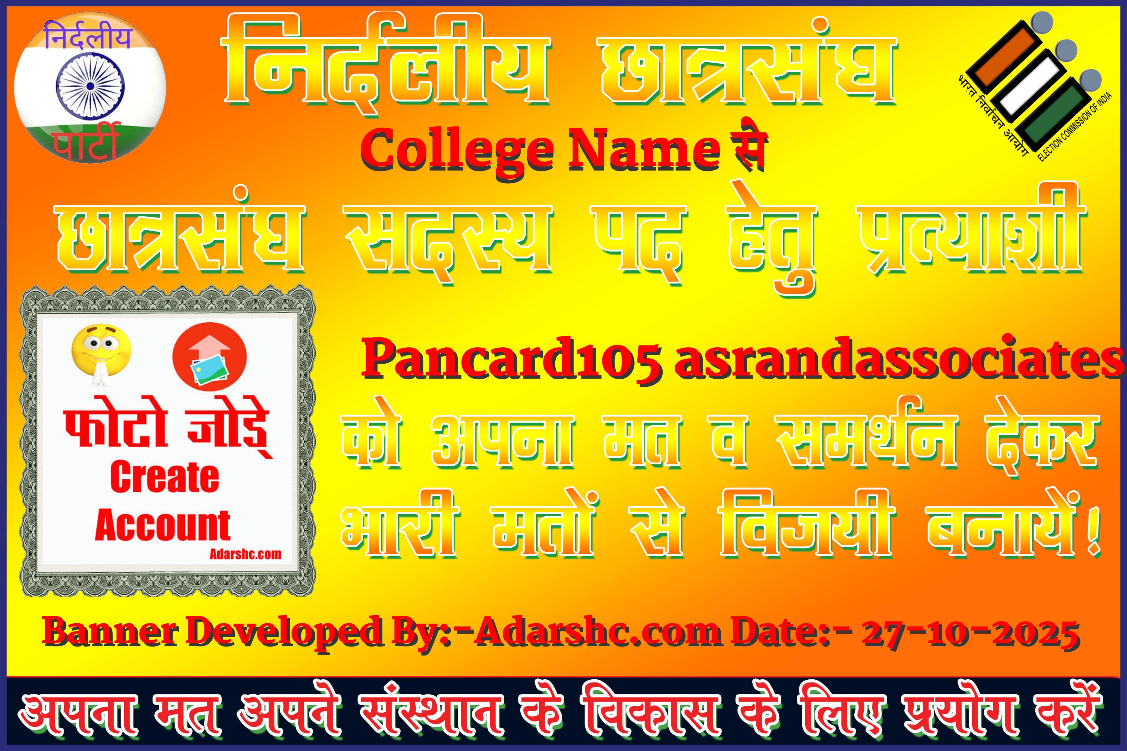 ☆ नमस्कार दोस्तों मेरा नाम Pancard105 asrandassociates है, मैं College Name का छात्र/छात्रा हूँ,