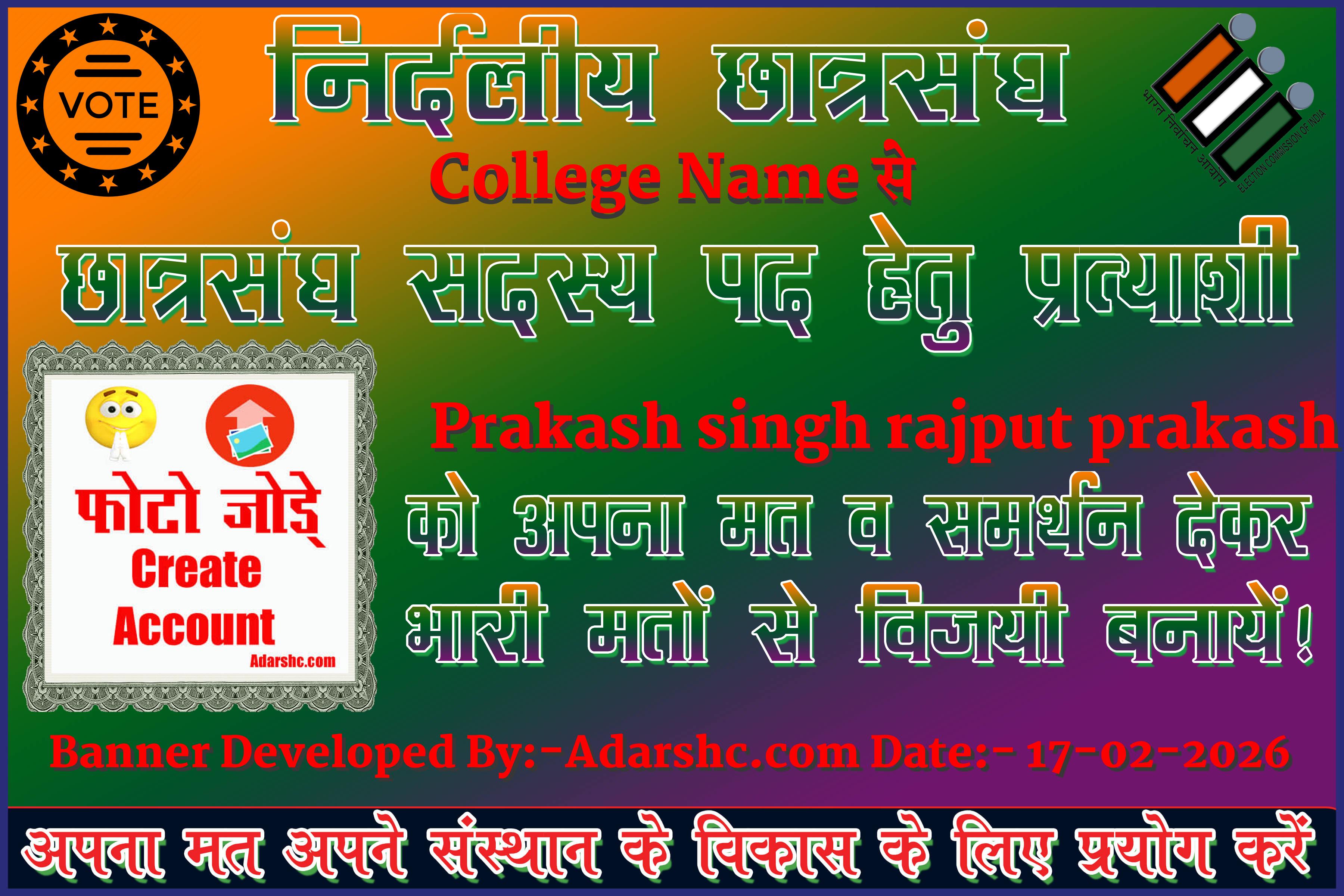Note:- ईस बार के छात्र संघ चुनाव में कृप्या हमें जरुर Support करे, इसके लिये हम आपके प्रति आभार व्यक्त करते है |