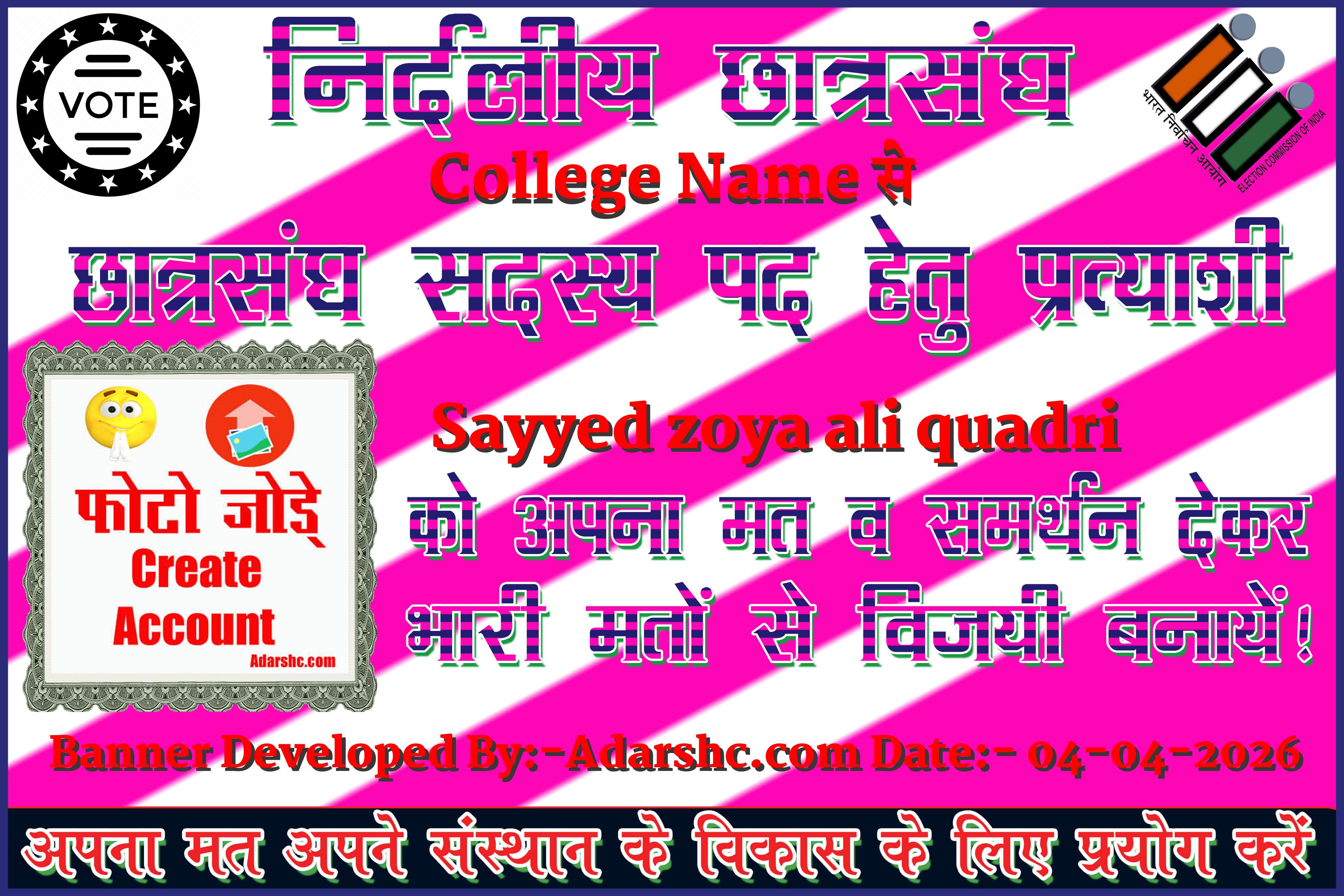 Note:- ईस बार के छात्र संघ चुनाव में कृप्या हमें जरुर Support करे, इसके लिये हम आपके प्रति आभार व्यक्त करते है |