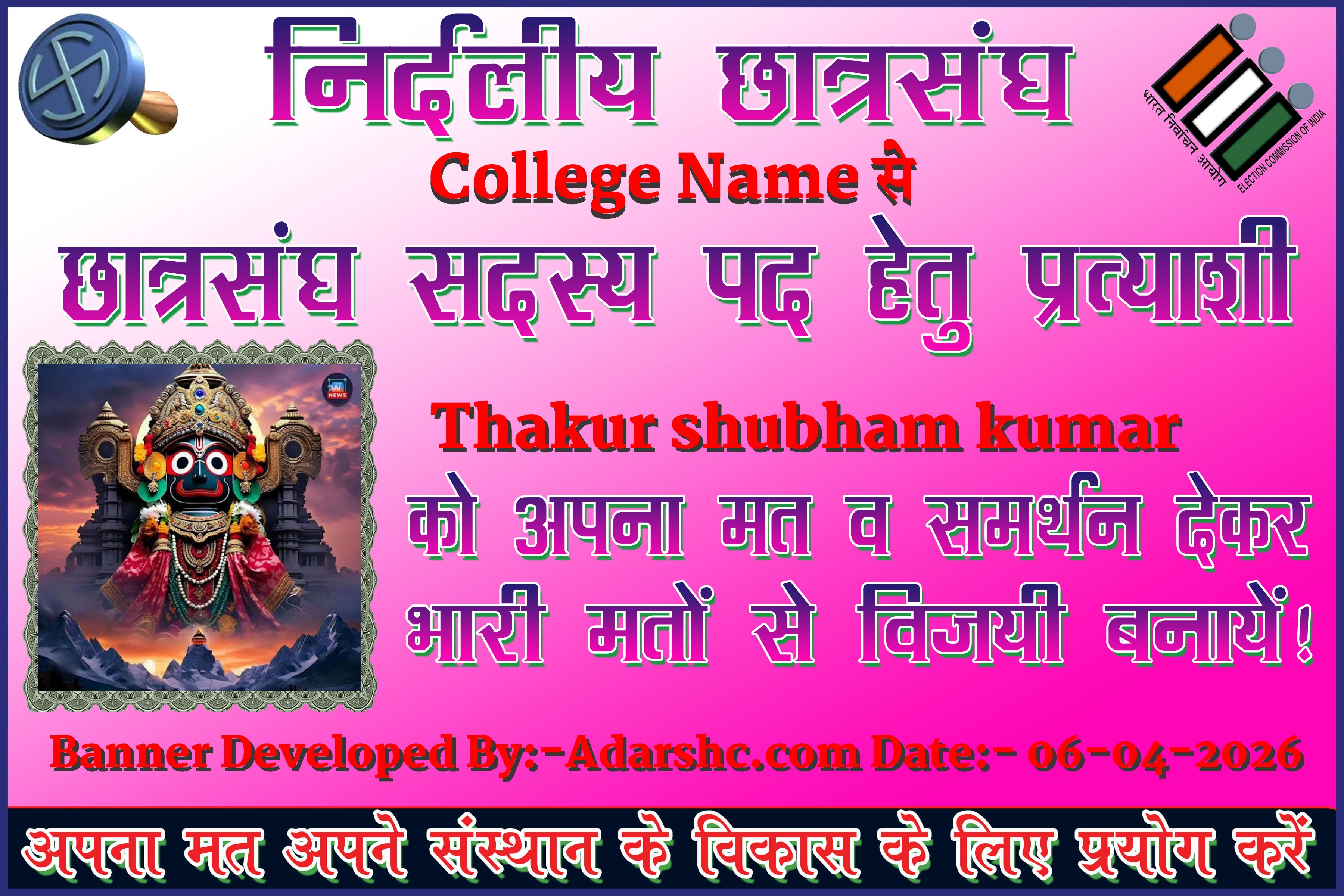 Note:- ईस बार के छात्र संघ चुनाव में कृप्या हमें जरुर Support करे, इसके लिये हम आपके प्रति आभार व्यक्त करते है |