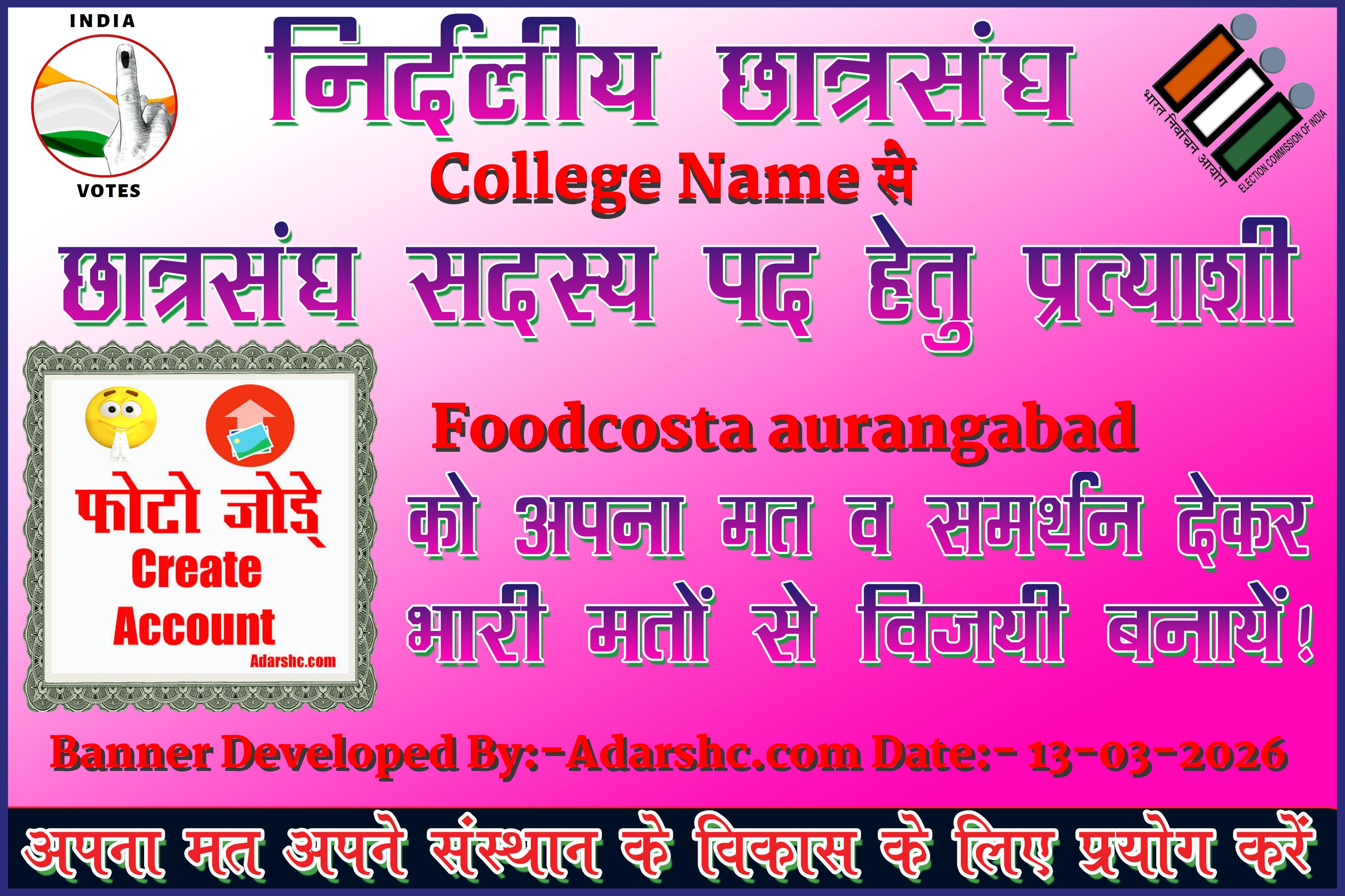 Note:- ईस बार के छात्र संघ चुनाव में कृप्या हमें जरुर Support करे, इसके लिये हम आपके प्रति आभार व्यक्त करते है |