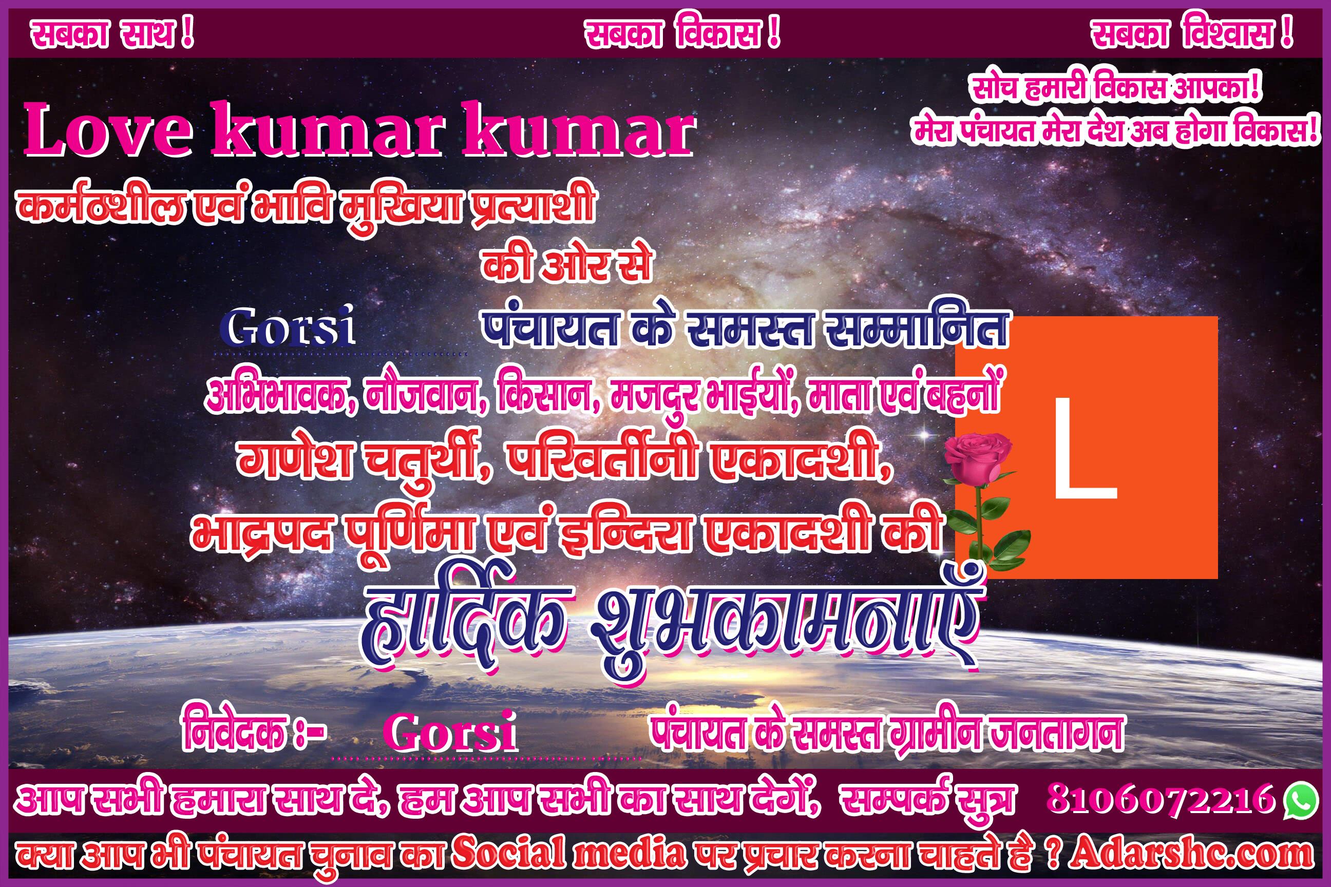 ♥ अगर आप भी पंचायत चुनाव में भाग लिये है ! तथा आप भी अपना ईस प्रकार से Social Media पर प्रचार कर अपने लोगों तक पहुँचना चाहते है, तो Sign up कर ID No. प्राप्त करे |