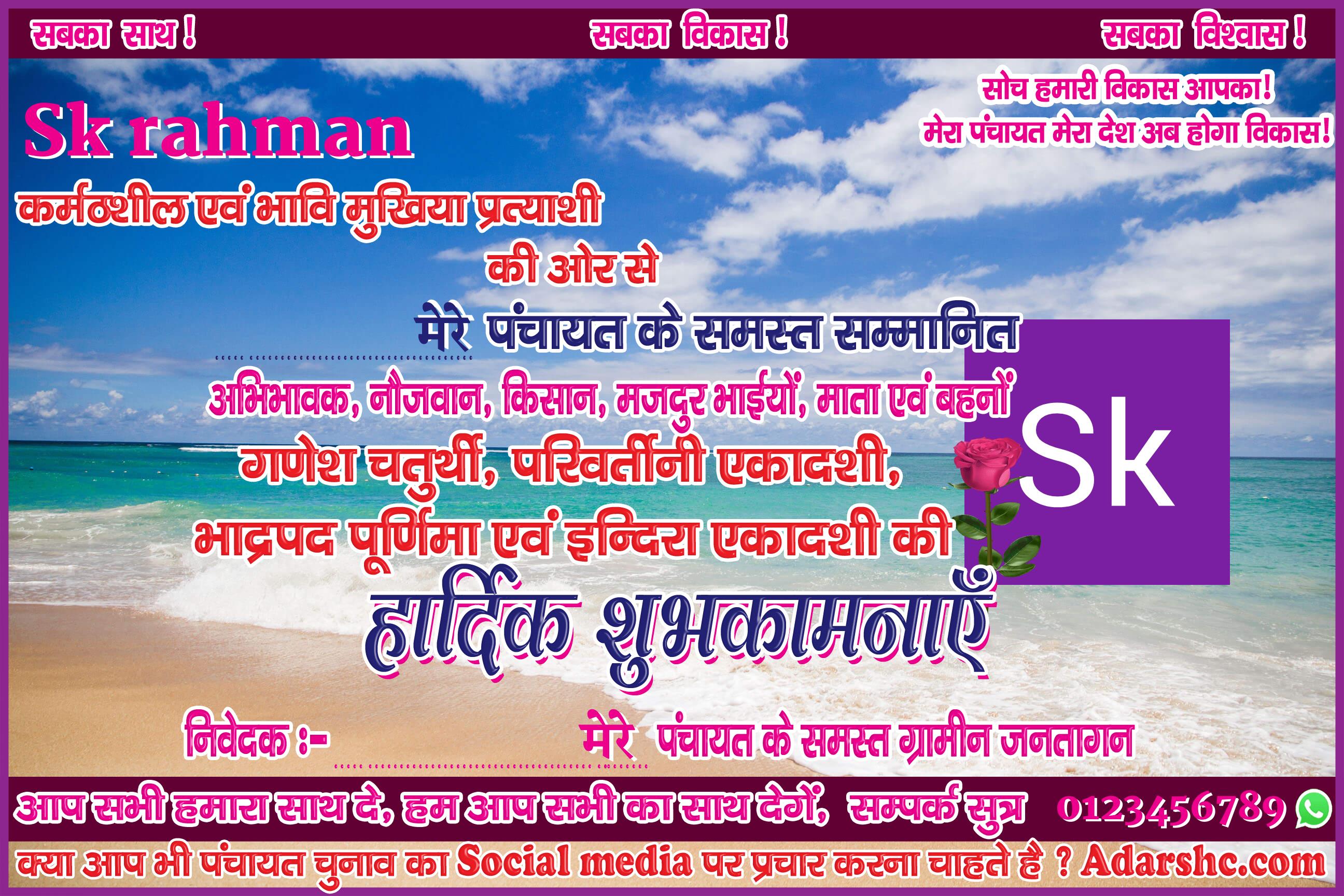 ♥ अगर आप भी पंचायत चुनाव में भाग लिये है ! तथा आप भी अपना ईस प्रकार से Social Media पर प्रचार कर अपने लोगों तक पहुँचना चाहते है, तो Sign up कर ID No. प्राप्त करे |