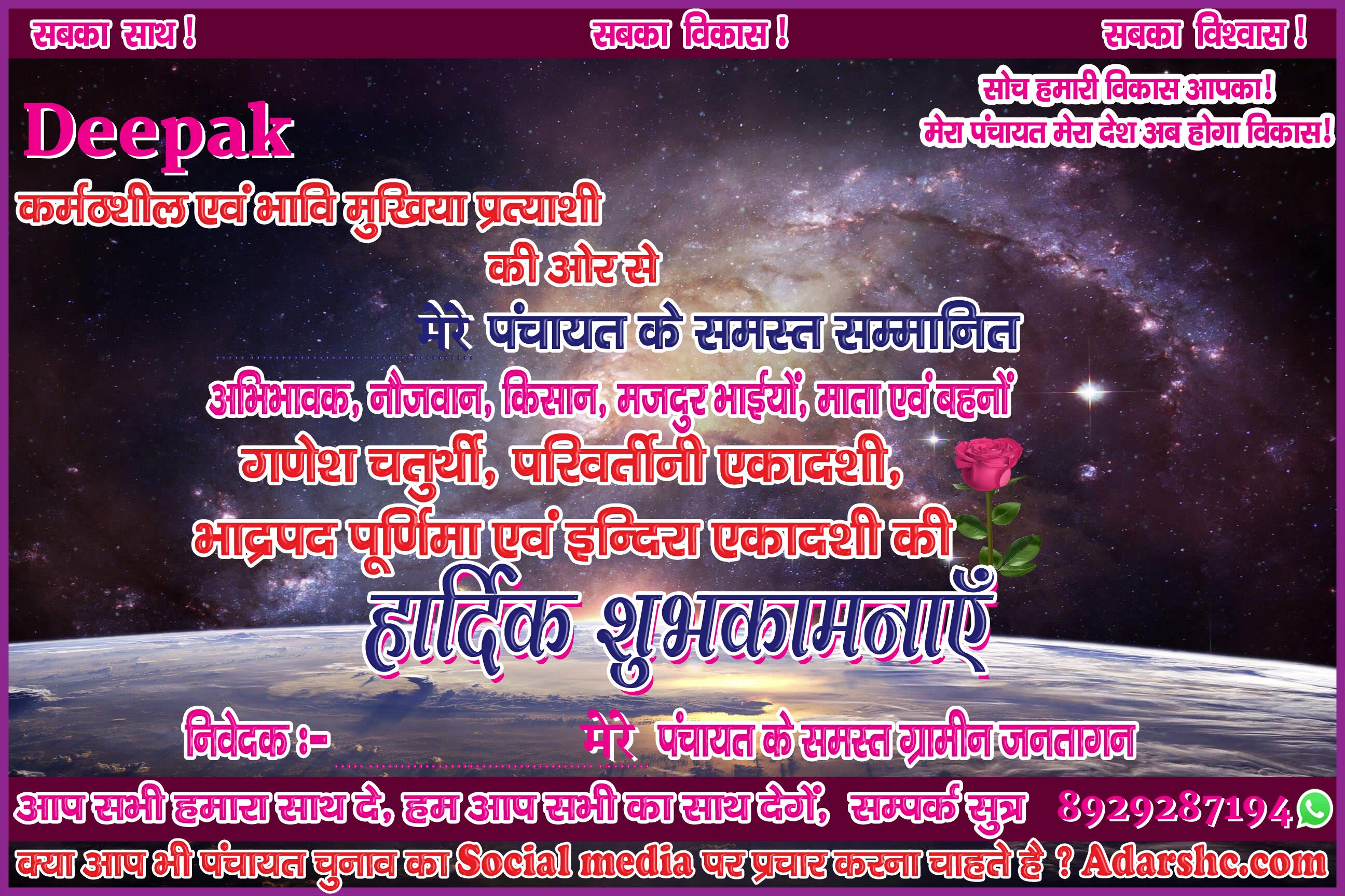 ♥ अगर आप भी पंचायत चुनाव में भाग लिये है ! तथा आप भी अपना ईस प्रकार से Social Media पर प्रचार कर अपने लोगों तक पहुँचना चाहते है, तो Sign up कर ID No. प्राप्त करे |