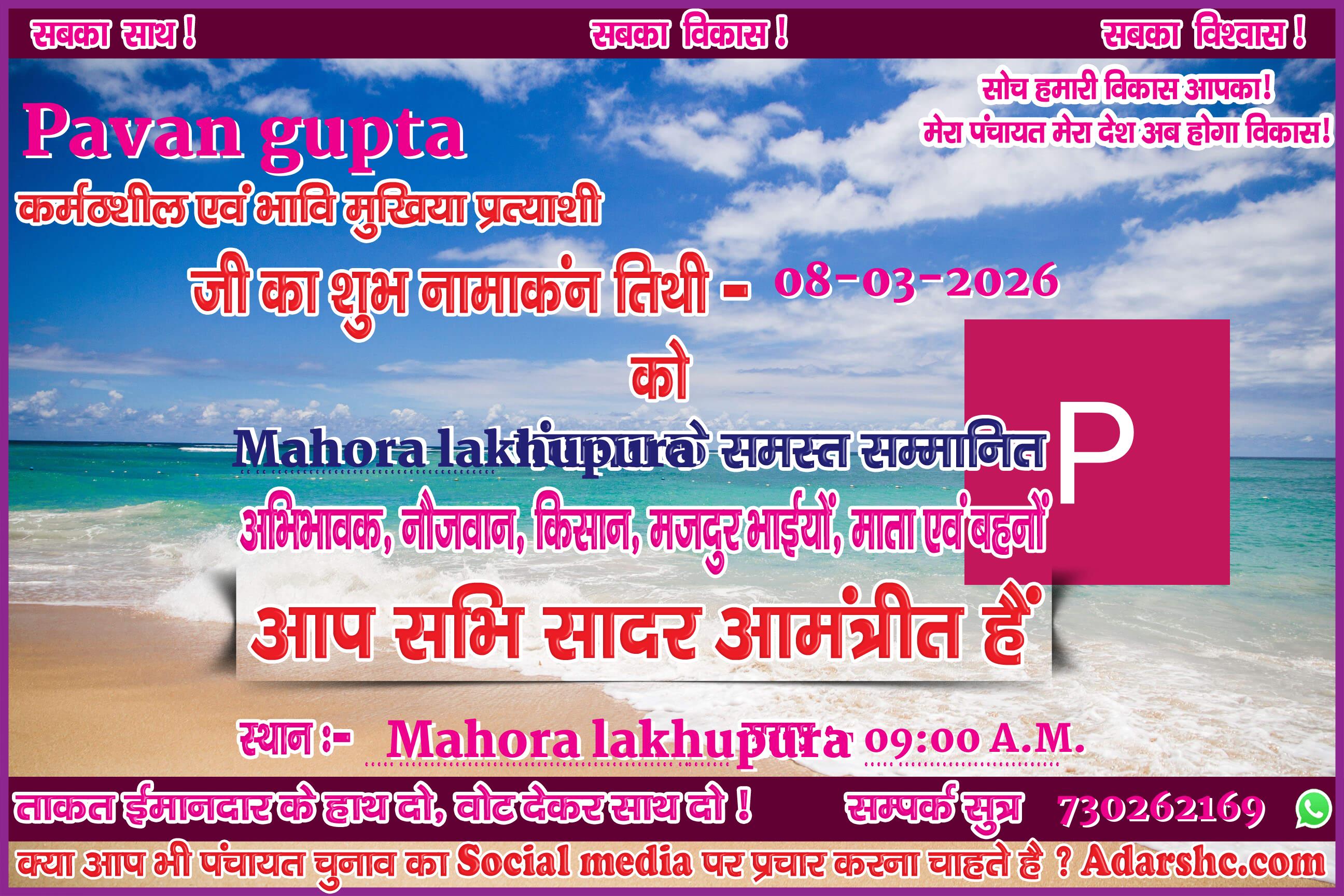 ♥ अगर आप भी पंचायत चुनाव में भाग लिये है ! तथा आप भी अपना ईस प्रकार से Social Media पर प्रचार कर अपने लोगों तक पहुँचना चाहते है, तो Sign up कर ID No. प्राप्त करे |