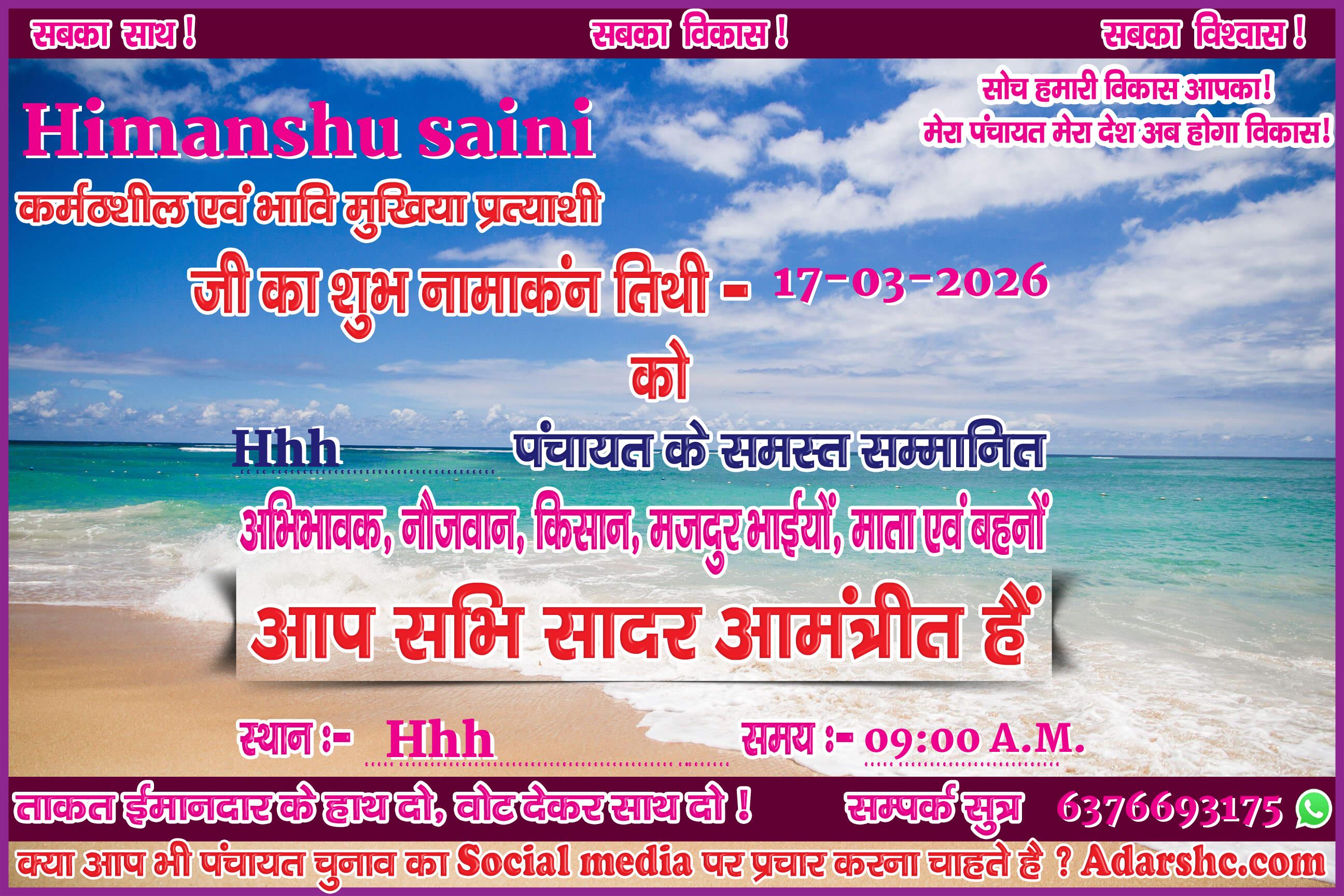 ♥ अगर आप भी पंचायत चुनाव में भाग लिये है ! तथा आप भी अपना ईस प्रकार से Social Media पर प्रचार कर अपने लोगों तक पहुँचना चाहते है, तो Sign up कर ID No. प्राप्त करे |