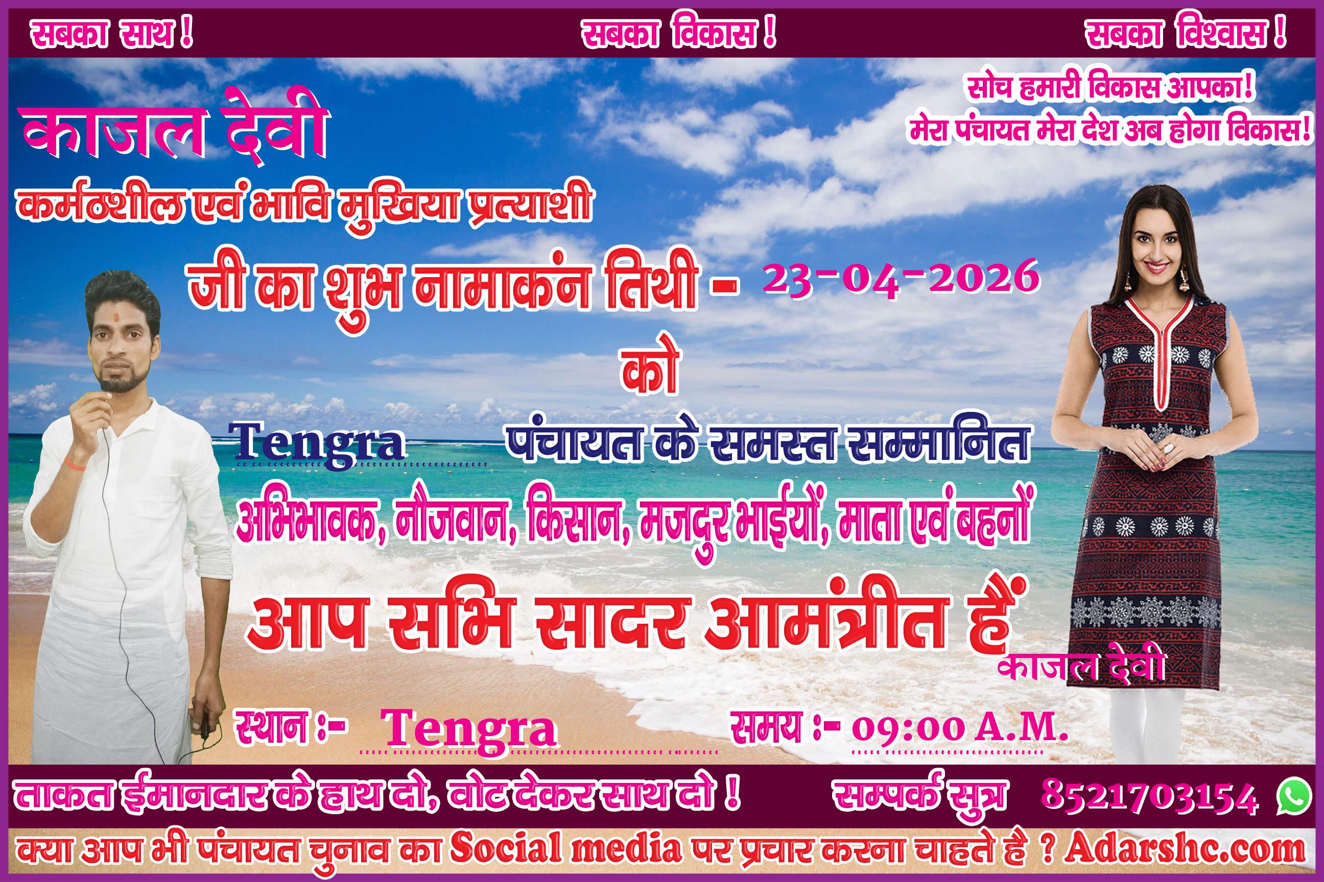 ♥ अगर आप भी पंचायत चुनाव में भाग लिये है ! तथा आप भी अपना ईस प्रकार से Social Media पर प्रचार कर अपने लोगों तक पहुँचना चाहते है, तो Sign up कर ID No. प्राप्त करे |