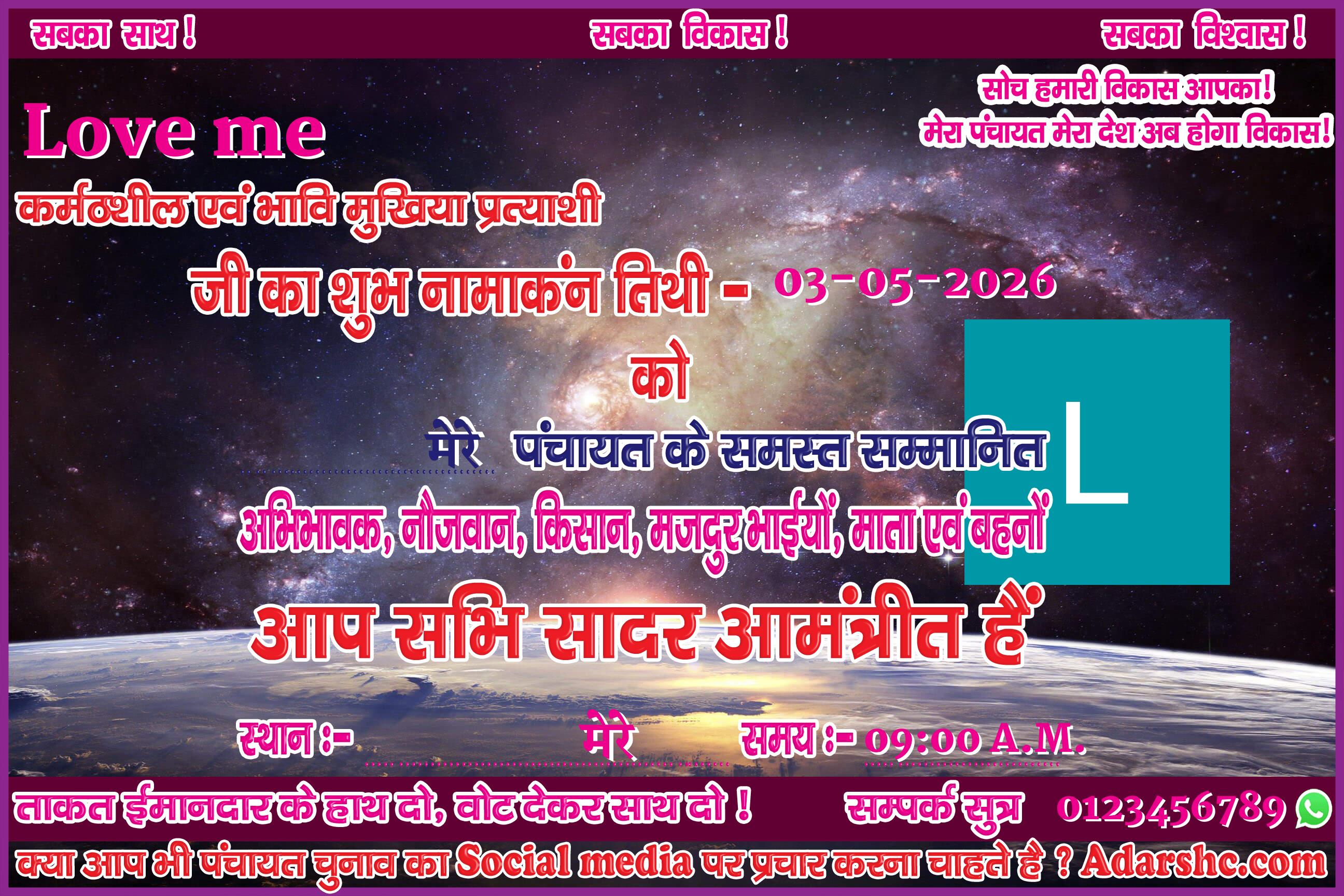♥ अगर आप भी पंचायत चुनाव में भाग लिये है ! तथा आप भी अपना ईस प्रकार से Social Media पर प्रचार कर अपने लोगों तक पहुँचना चाहते है, तो Sign up कर ID No. प्राप्त करे |