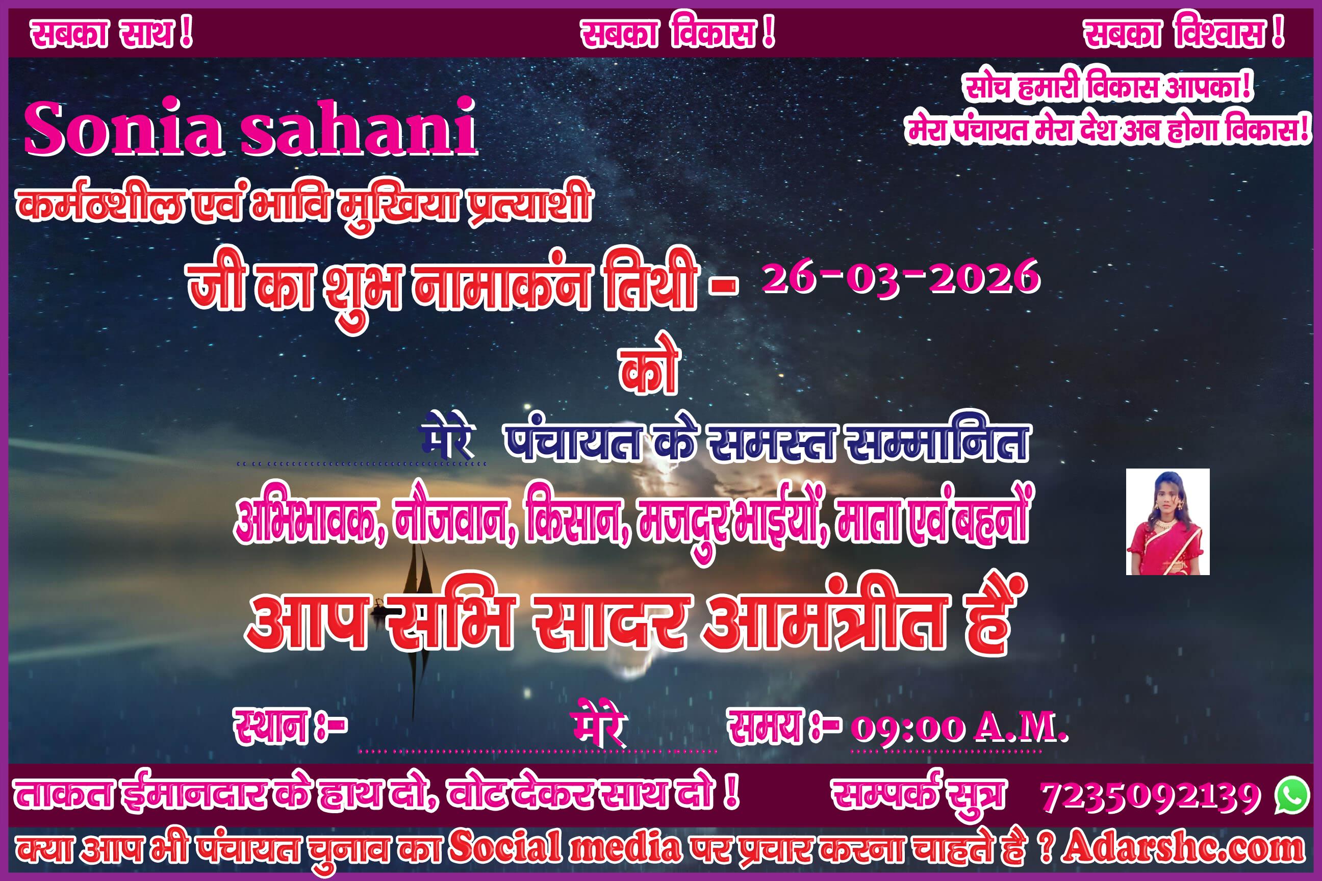 Note:- ईस बार के पंचायत चुनाव में कृप्या हमें जरुर Support करे, इसके लिये हम आपके प्रति आभार व्यक्त करते है |