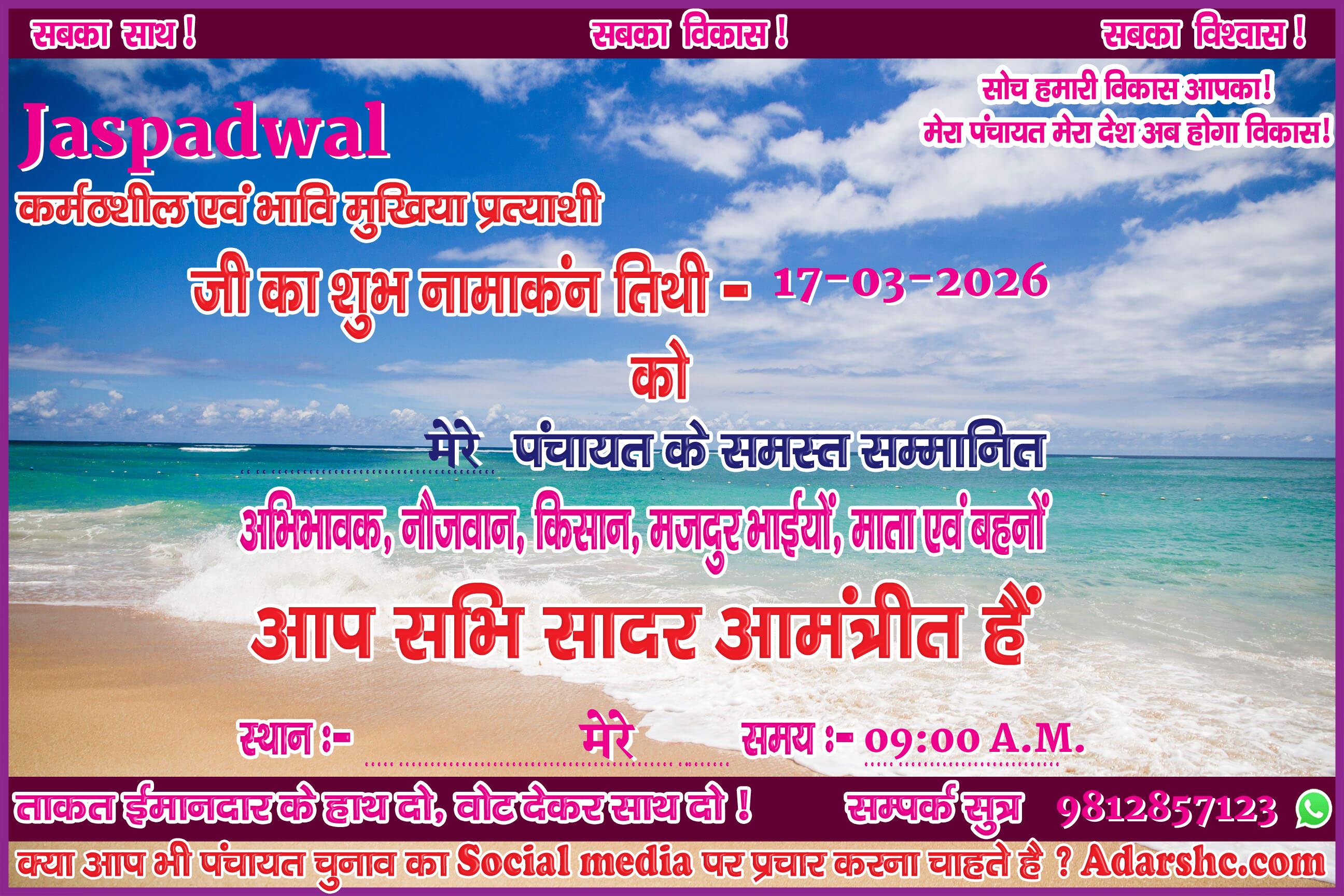 ♥ अगर आप भी पंचायत चुनाव में भाग लिये है ! तथा आप भी अपना ईस प्रकार से Social Media पर प्रचार कर अपने लोगों तक पहुँचना चाहते है, तो Sign up कर ID No. प्राप्त करे |