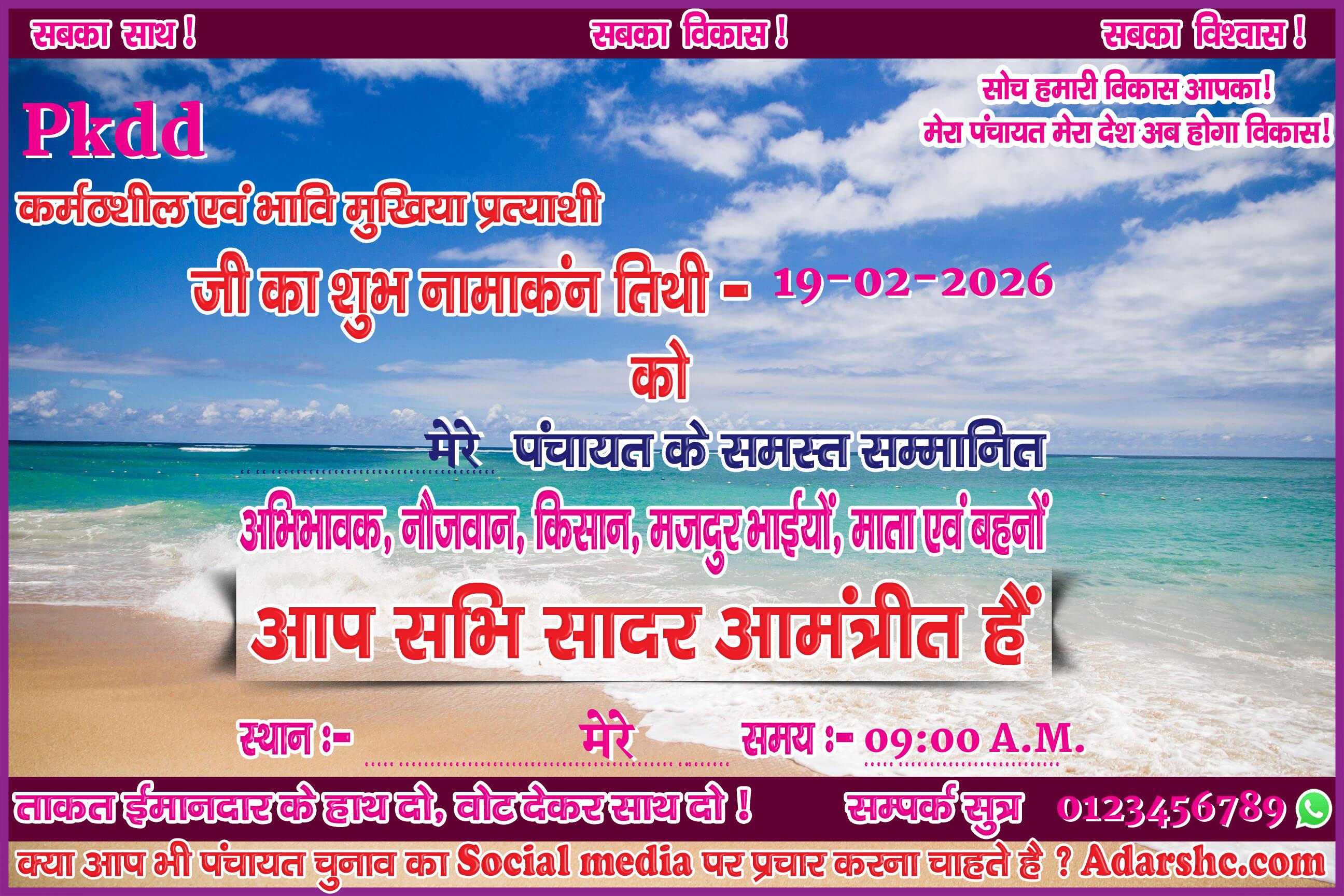 ♥ अगर आप भी पंचायत चुनाव में भाग लिये है ! तथा आप भी अपना ईस प्रकार से Social Media पर प्रचार कर अपने लोगों तक पहुँचना चाहते है, तो Sign up कर ID No. प्राप्त करे |