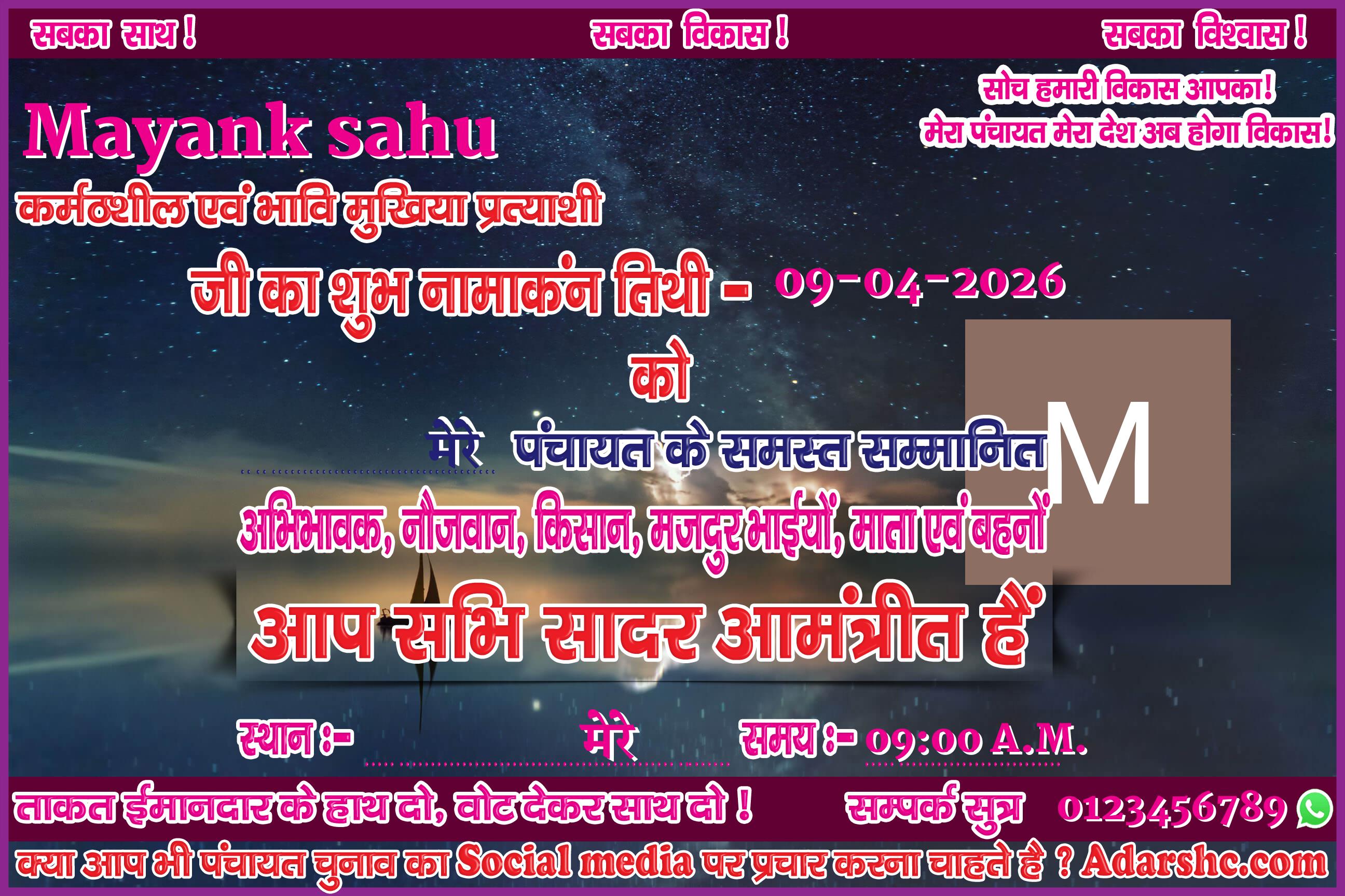 Note:- ईस बार के पंचायत चुनाव में कृप्या हमें जरुर Support करे, इसके लिये हम आपके प्रति आभार व्यक्त करते है |
