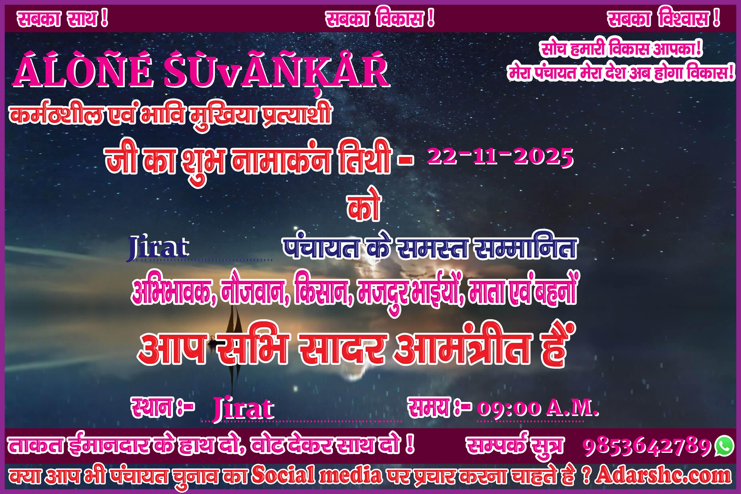 Note:- ईस बार के पंचायत चुनाव में कृप्या हमें जरुर Support करे, इसके लिये हम आपके प्रति आभार व्यक्त करते है |