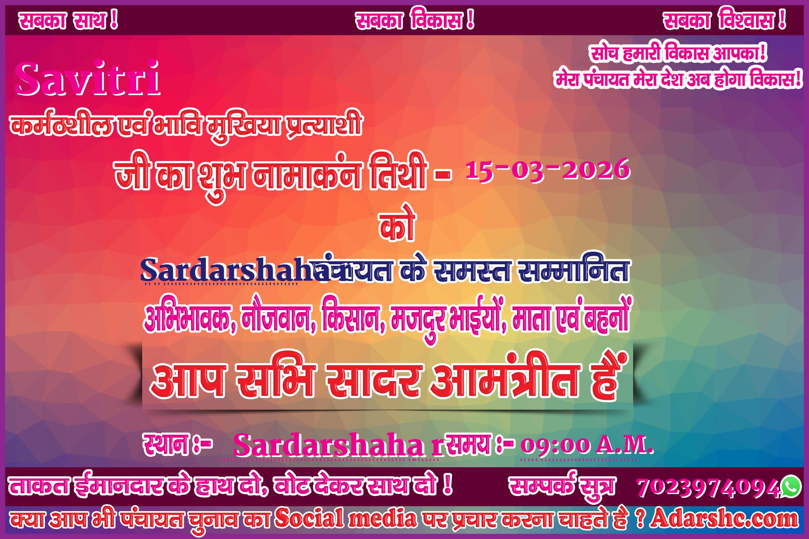 Note:- ईस बार के पंचायत चुनाव में कृप्या हमें जरुर Support करे, इसके लिये हम आपके प्रति आभार व्यक्त करते है |
