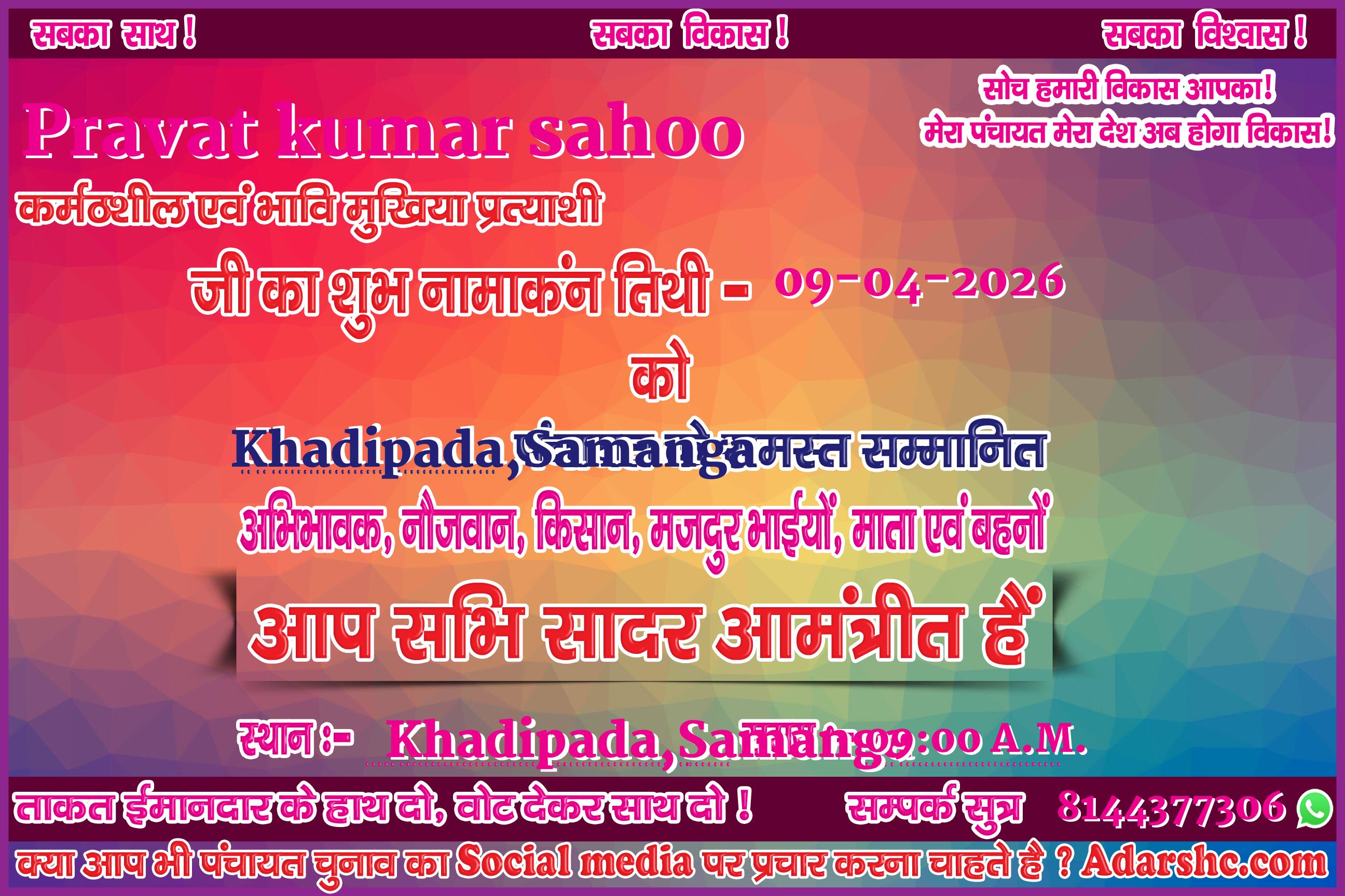 Note:- ईस बार के पंचायत चुनाव में कृप्या हमें जरुर Support करे, इसके लिये हम आपके प्रति आभार व्यक्त करते है |