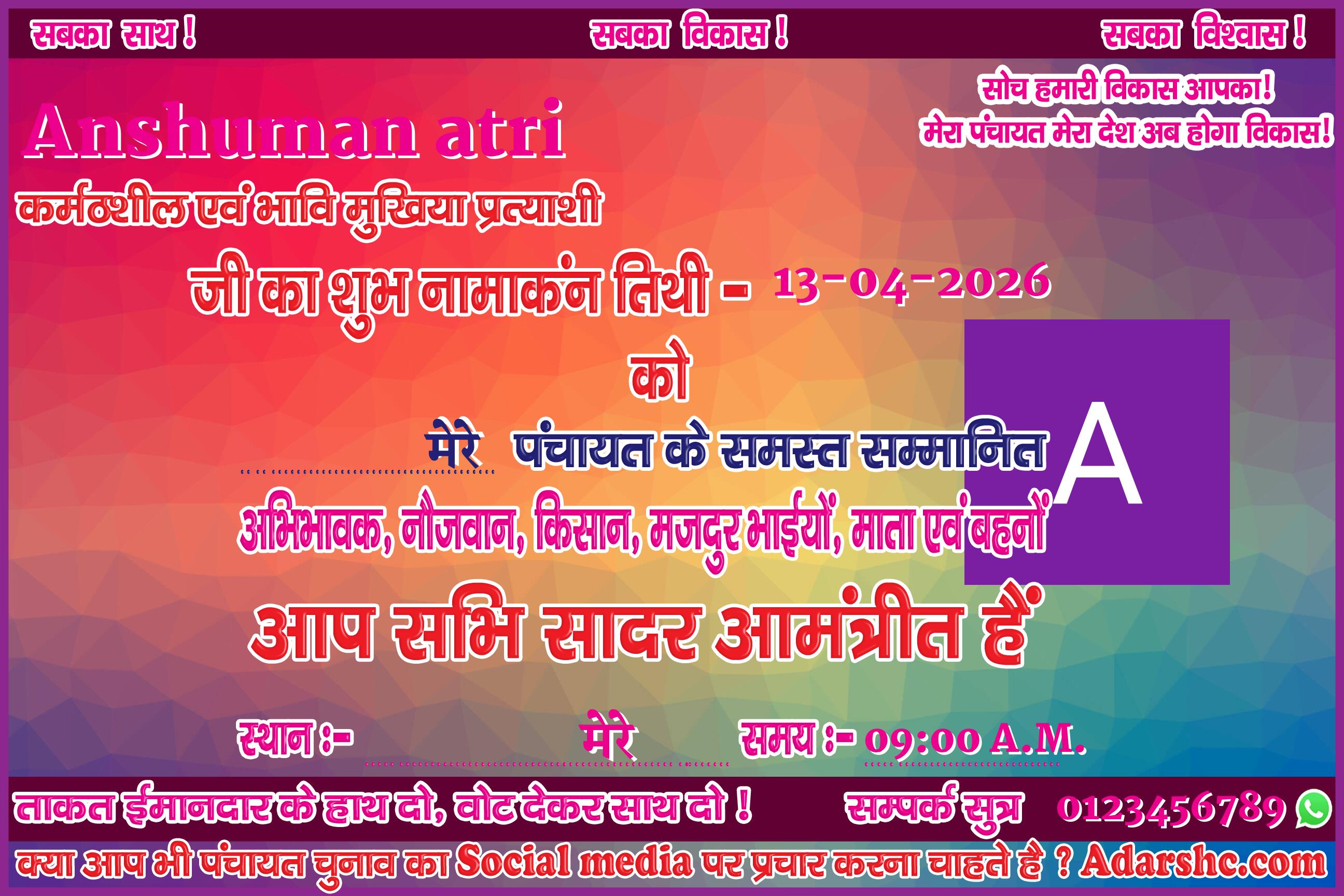 Note:- ईस बार के पंचायत चुनाव में कृप्या हमें जरुर Support करे, इसके लिये हम आपके प्रति आभार व्यक्त करते है |