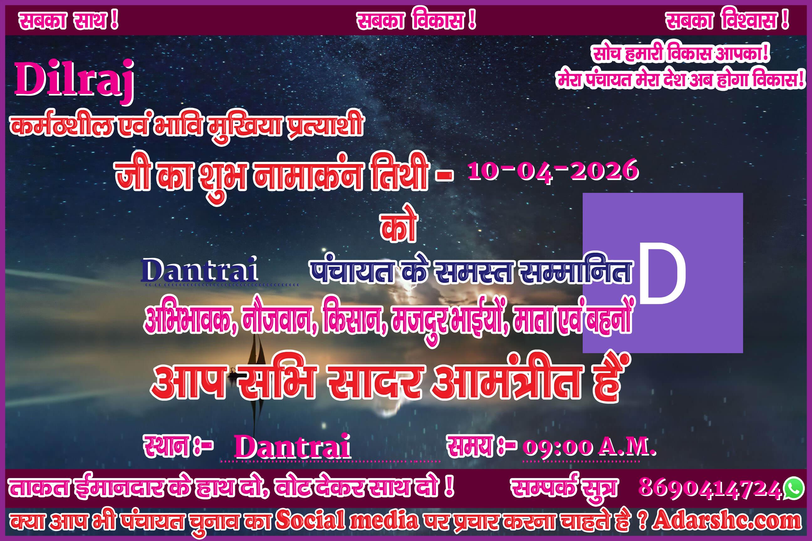 ♥ अगर आप भी पंचायत चुनाव में भाग लिये है ! तथा आप भी अपना ईस प्रकार से Social Media पर प्रचार कर अपने लोगों तक पहुँचना चाहते है, तो Sign up कर ID No. प्राप्त करे |