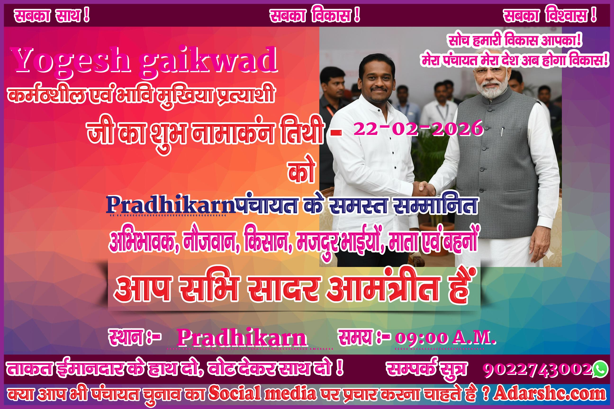 ♥ अगर आप भी पंचायत चुनाव में भाग लिये है ! तथा आप भी अपना ईस प्रकार से Social Media पर प्रचार कर अपने लोगों तक पहुँचना चाहते है, तो Sign up कर ID No. प्राप्त करे |