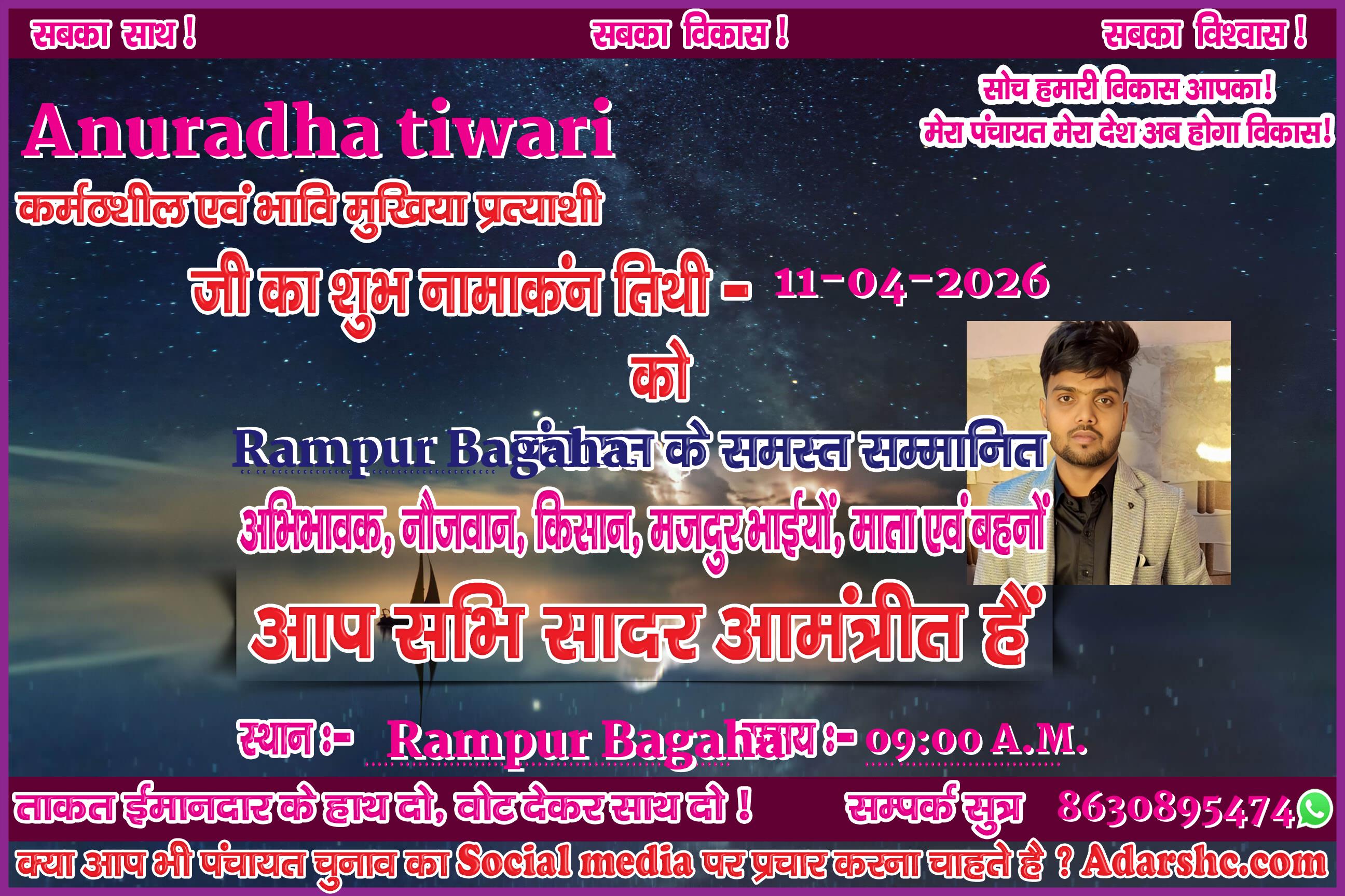 ♥ अगर आप भी पंचायत चुनाव में भाग लिये है ! तथा आप भी अपना ईस प्रकार से Social Media पर प्रचार कर अपने लोगों तक पहुँचना चाहते है, तो Sign up कर ID No. प्राप्त करे |