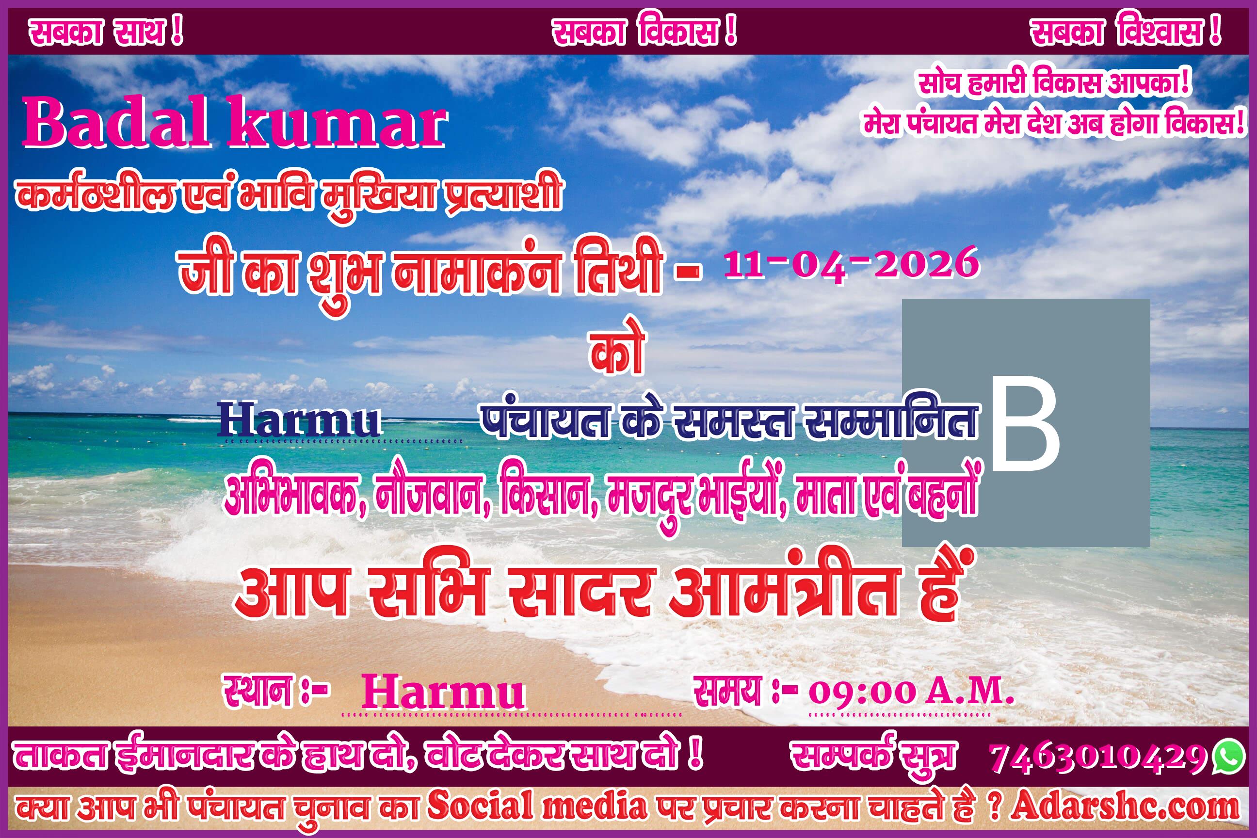 Note:- ईस बार के पंचायत चुनाव में कृप्या हमें जरुर Support करे, इसके लिये हम आपके प्रति आभार व्यक्त करते है |