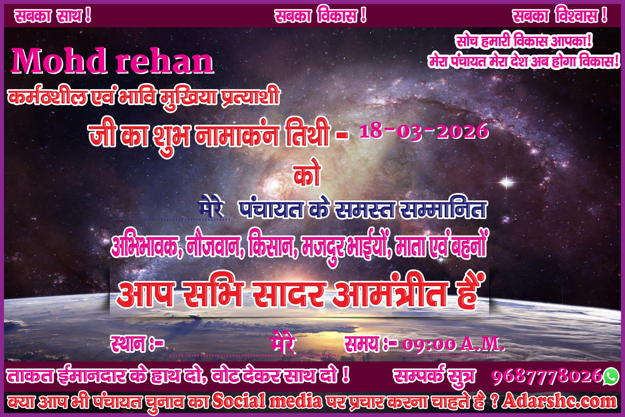 Note:- ईस बार के पंचायत चुनाव में कृप्या हमें जरुर Support करे, इसके लिये हम आपके प्रति आभार व्यक्त करते है |
