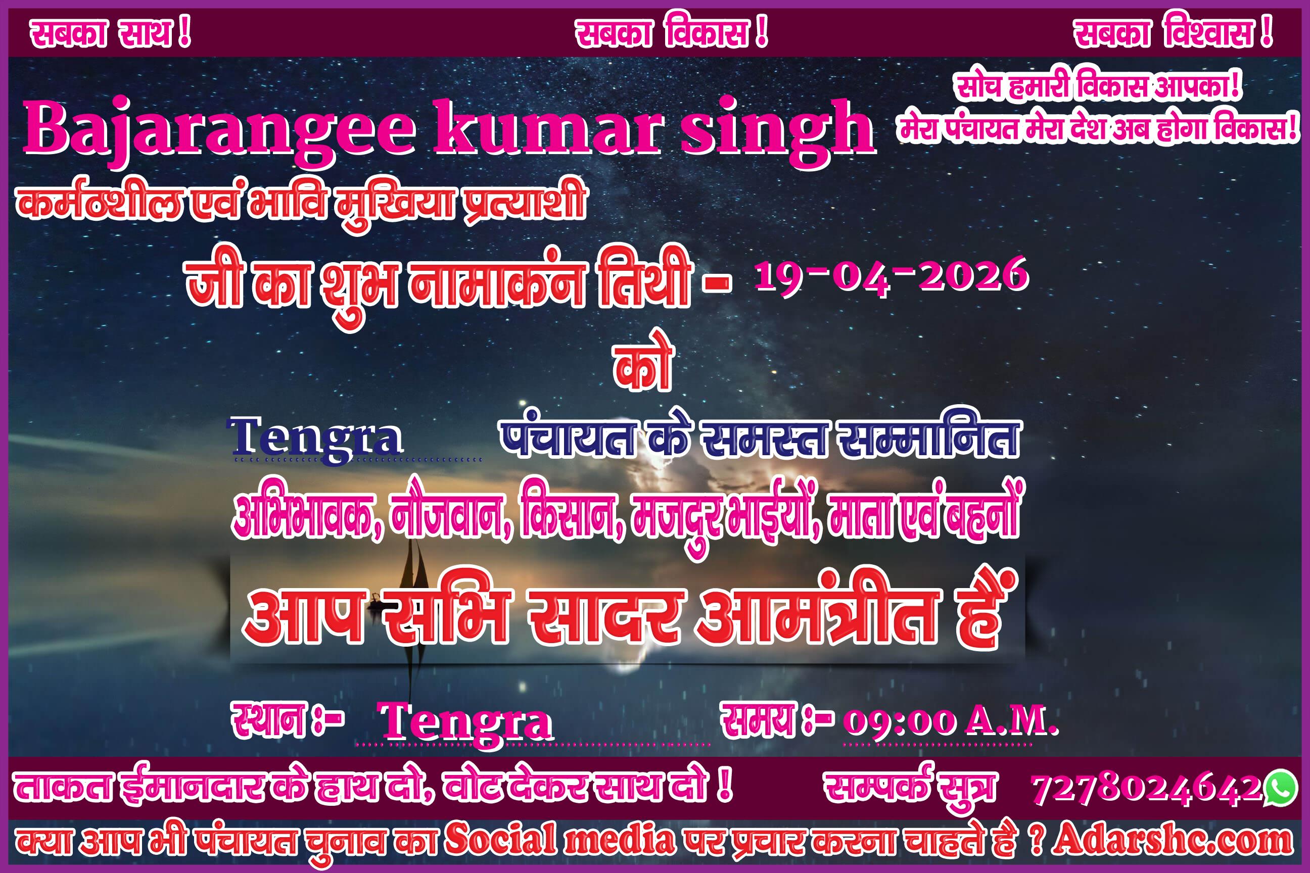 Note:- ईस बार के पंचायत चुनाव में कृप्या हमें जरुर Support करे, इसके लिये हम आपके प्रति आभार व्यक्त करते है |
