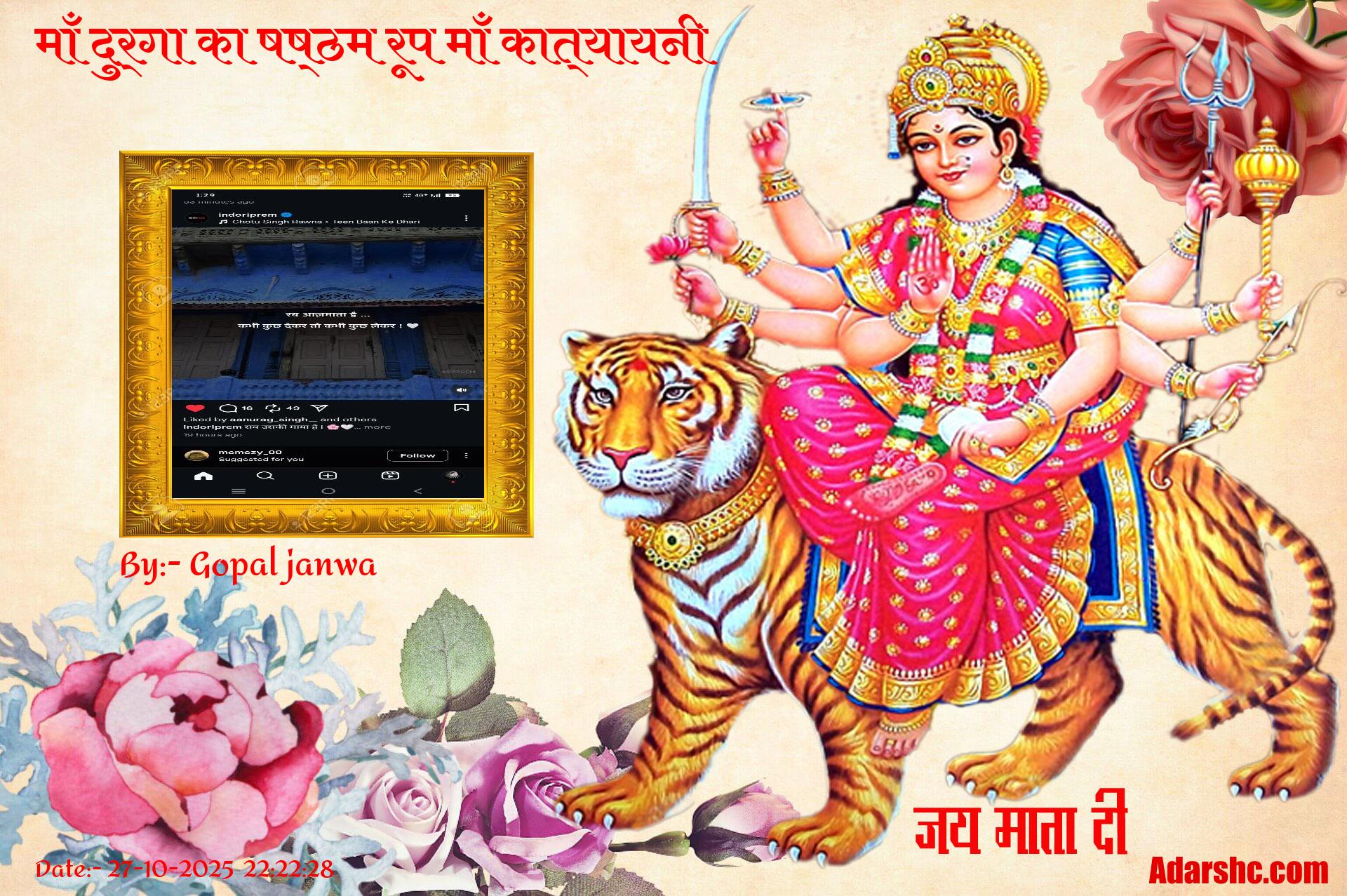 рдХреЛ рдореЗрд░рд╛ рдкреНрд░рдгрд╛рдо рд╣реИ, рдорд╛рдБ рдореЗрд░рд╛ рдФрд░ рдореЗрд░реЗ рд╕рднреА рд╢реБрдн-рдЪрд┐рдВрддрдХреЛ рдХреЗ рдЙрдкрд░ рджрдпрд╛ рджреГрд╖реНрдЯреА рдмрдирд╛рдпреЗ рд░рдЦрдирд╛ рдорд╛рдБ ! ЁЯЩП