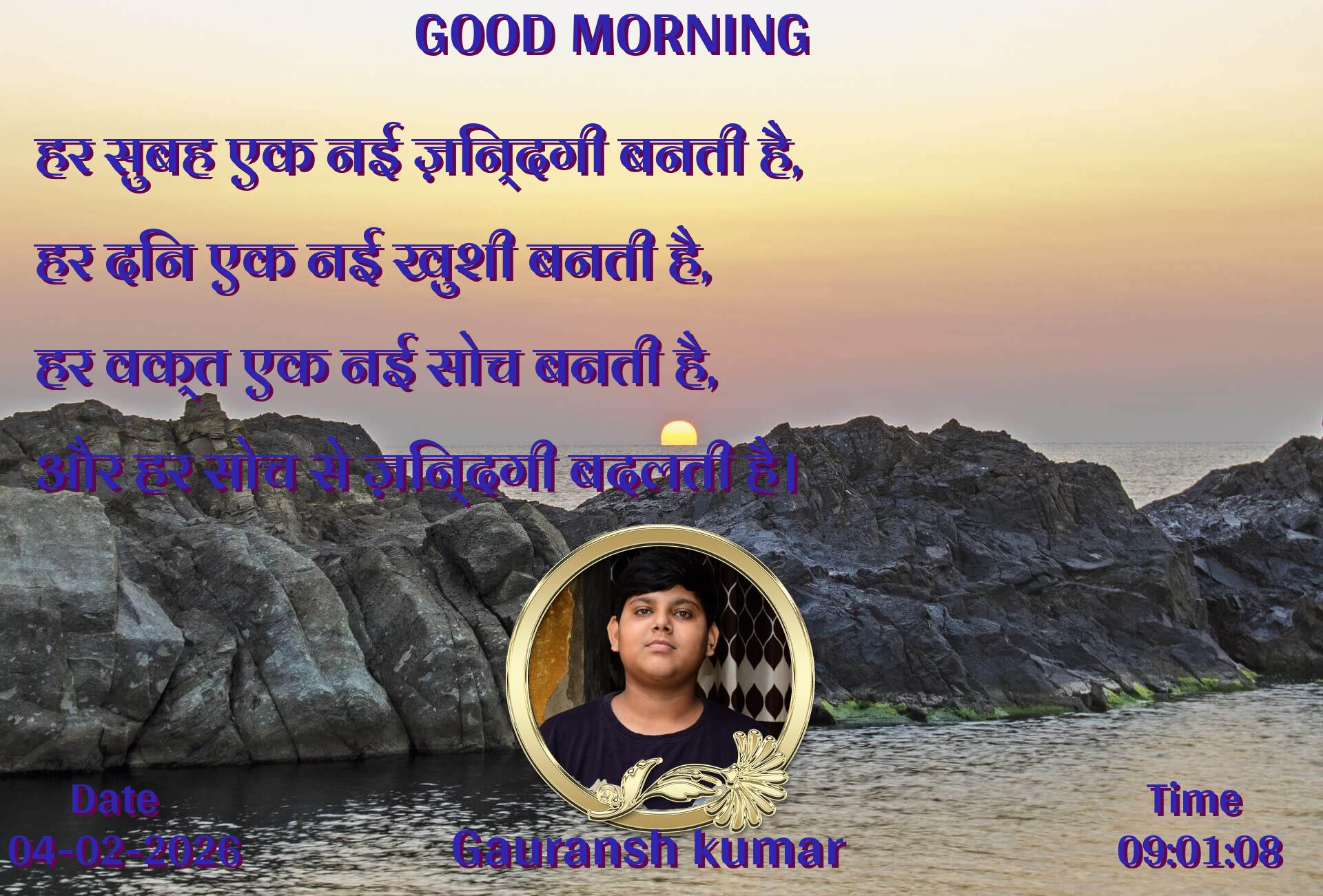 हर सुबह एक नई ज़िन्दगी बनती है, हर दिन एक नई खुशी बनती है, हर वक्त एक नई सोच बनती है, और हर सोच से ज़िन्दगी बदलती है।