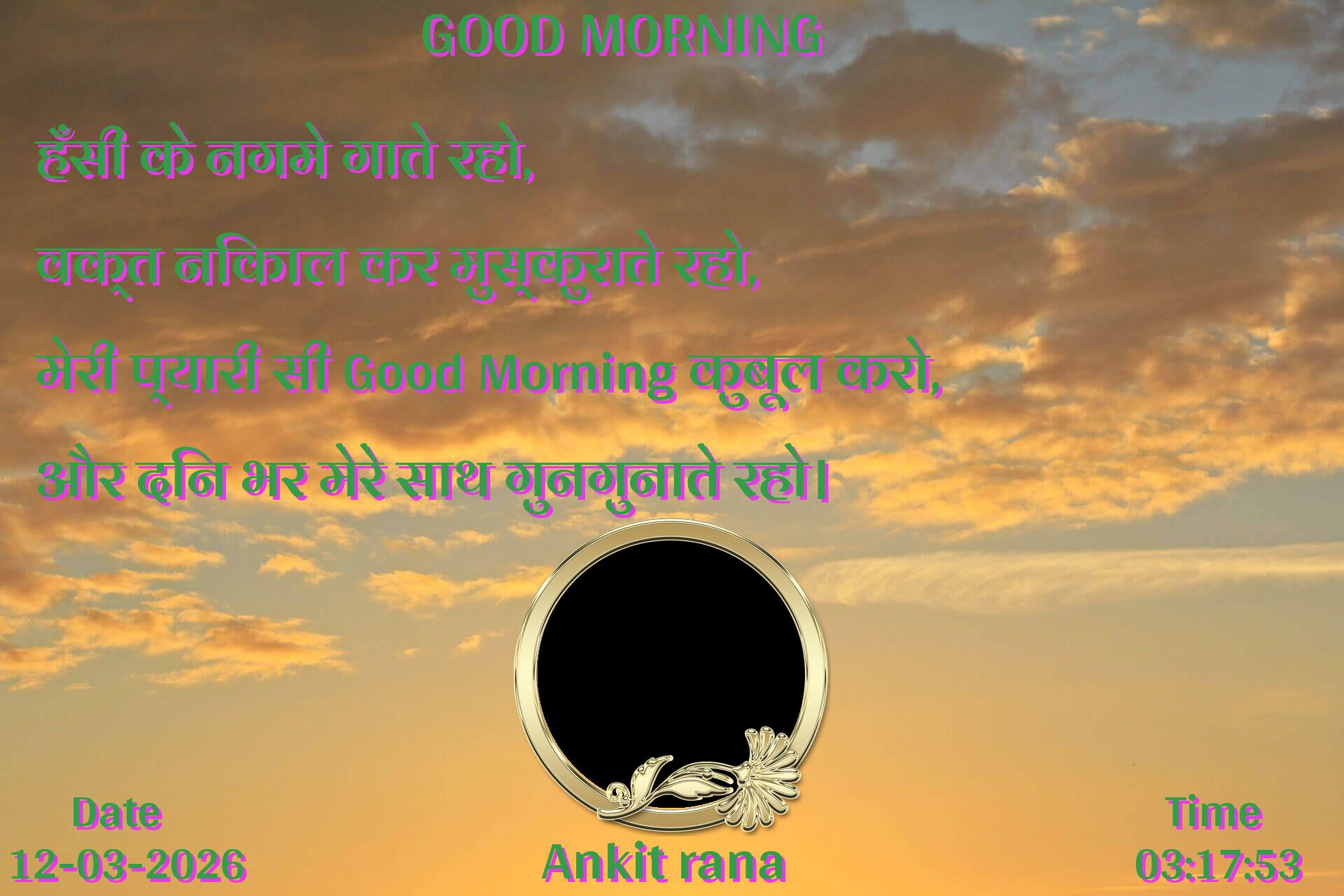 हँसी के नगमे गाते रहो, वक्त निकाल कर मुस्कुराते रहो, मेरी प्यारी सी Good Morning कुबूल करो, और दिन भर मेरे साथ गुनगुनाते रहो।