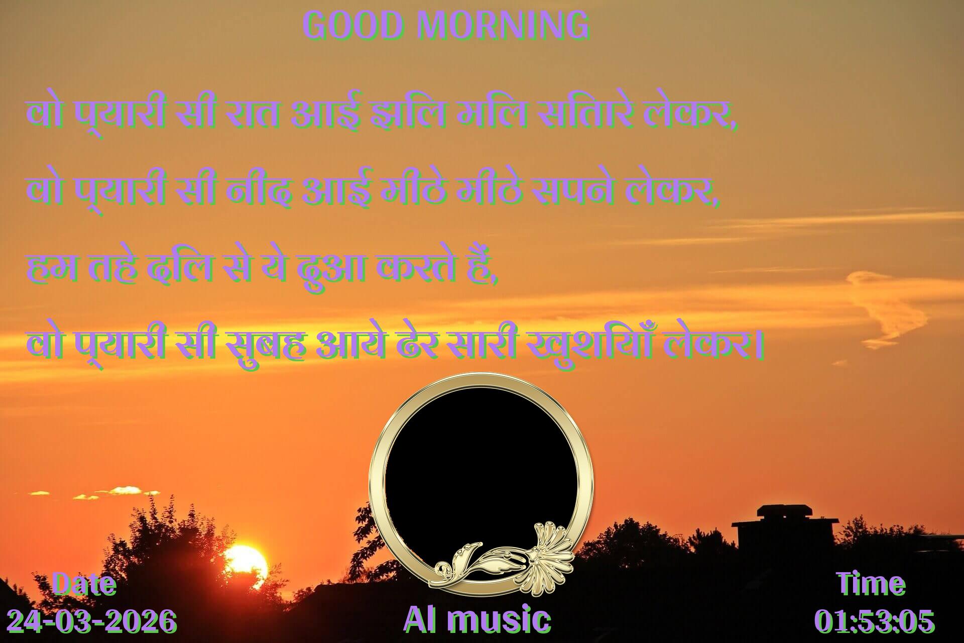 वो प्यारी सी रात आई झिल मिल सितारे लेकर, वो प्यारी सी नींद आई मीठे मीठे सपने लेकर, हम तहे दिल से ये दुआ करते हैं, वो प्यारी सी सुबह आये ढेर सारी खुशियाँ लेकर।