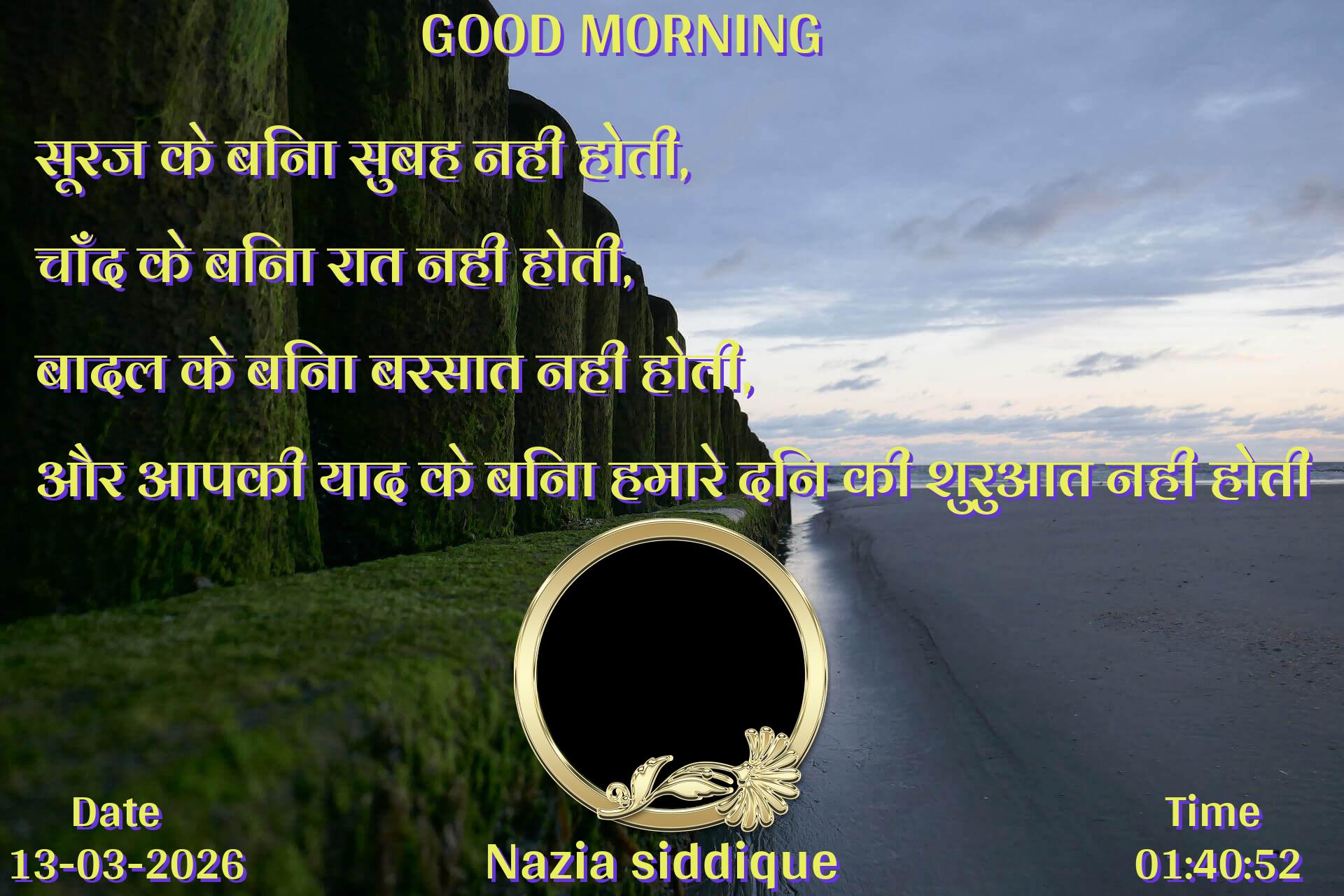 सूरज के बिना सुबह नही होती, चाँद के बिना रात नही होती, बादल के बिना बरसात नही होती, और आपकी याद के बिना हमारे दिन की शुरुआत नही होती