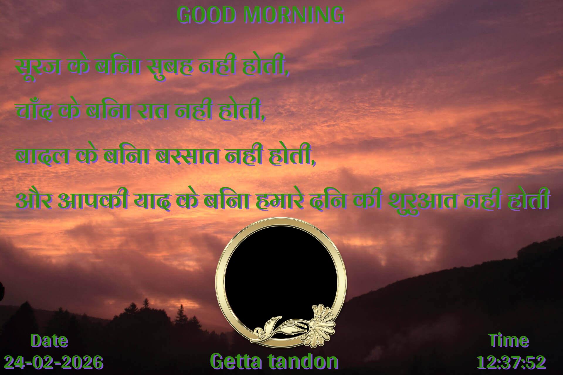 सूरज के बिना सुबह नही होती, चाँद के बिना रात नही होती, बादल के बिना बरसात नही होती, और आपकी याद के बिना हमारे दिन की शुरुआत नही होती