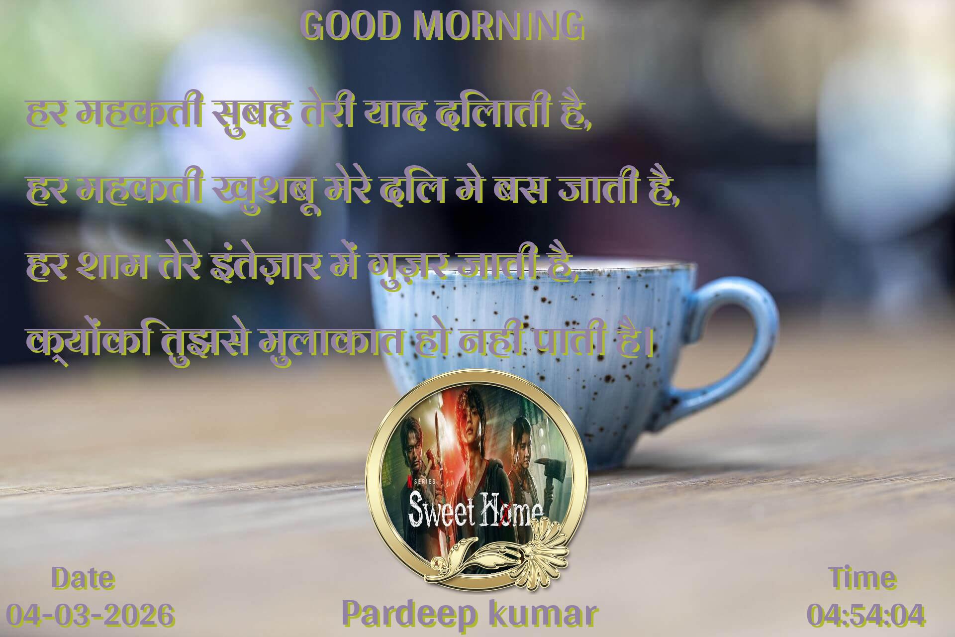 हर महकती सुबह तेरी याद दिलाती है, हर महकती खुशबू मेरे दिल मे बस जाती है, हर शाम तेरे इंतेज़ार में गुज़र जाती है, क्योंकि तुझसे मुलाकात हो नही पाती है।