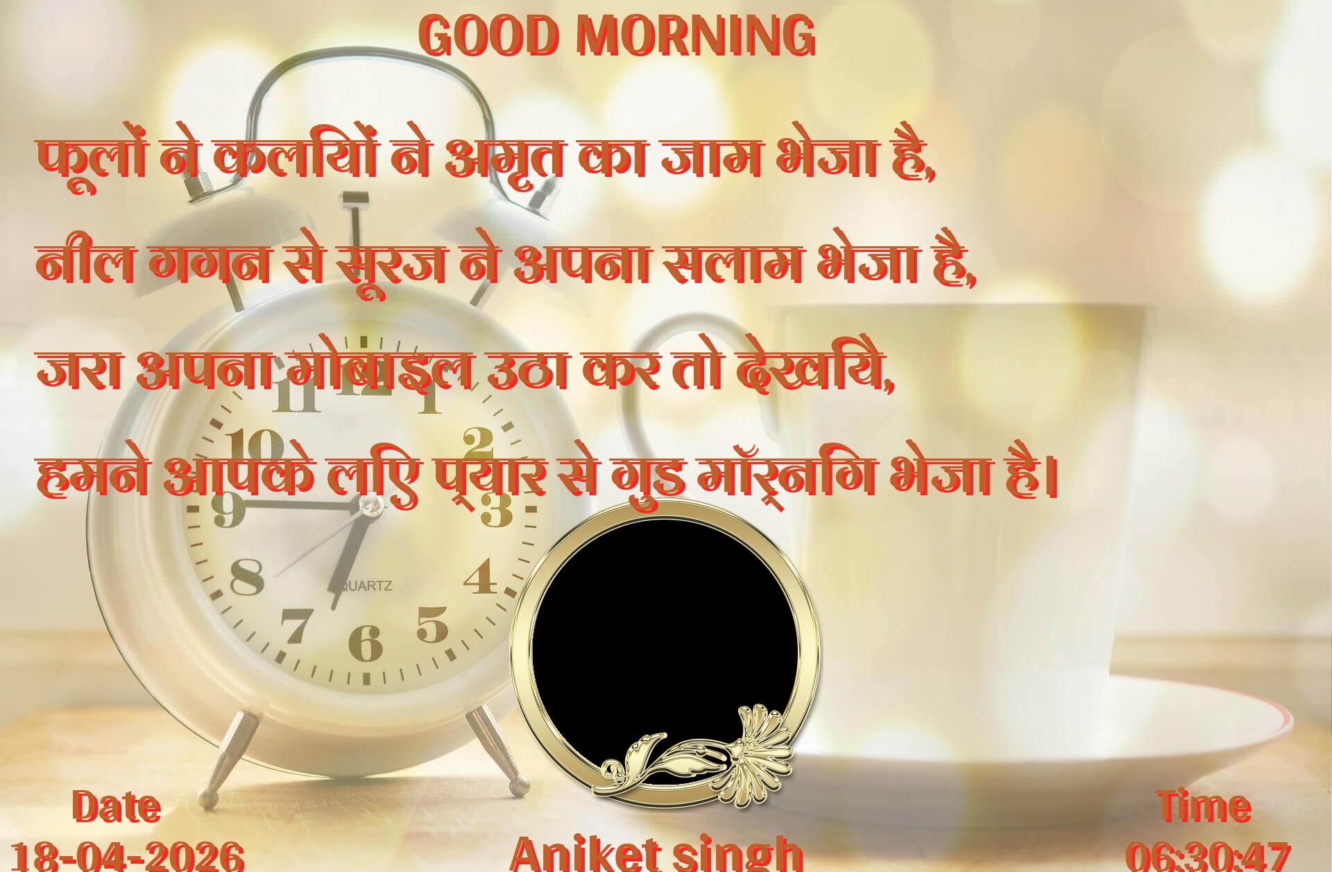 फूलों ने कलियों ने अमृत का जाम भेजा है, नील गगन से सूरज ने अपना सलाम भेजा है, जरा अपना मोबाइल उठा कर तो देखिये, हमने आपके लिए प्यार से गुड मॉर्निंग भेजा है।