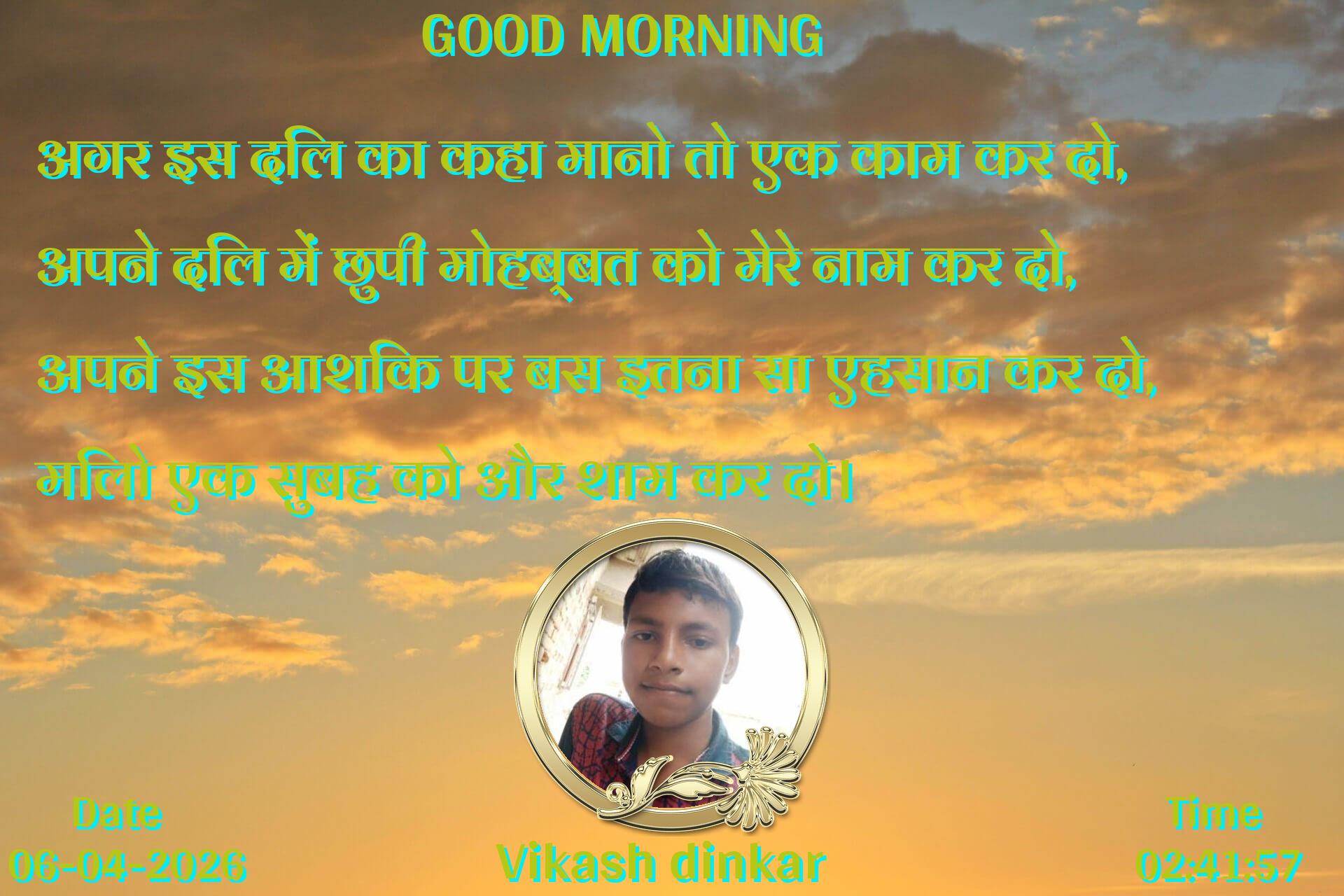 अगर इस दिल का कहा मानो तो एक काम कर दो, अपने दिल में छुपी मोहब्बत को मेरे नाम कर दो, अपने इस आशिक पर बस इतना सा एहसान कर दो, मिलो एक सुबह को और शाम कर दो।