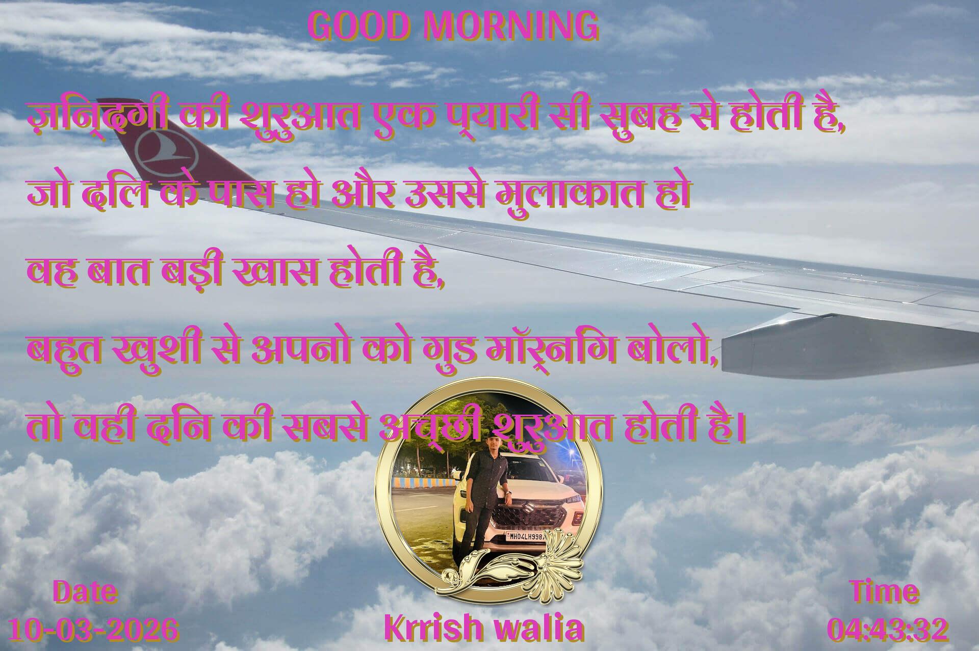 ज़िन्दगी की शुरुआत एक प्यारी सी सुबह से होती है, जो दिल के पास हो और उससे मुलाकात हो वह बात बड़ी खास होती है, बहुत खुशी से अपनो को गुड मॉर्निंग बोलो, तो वही दिन की सबसे अच्छी शुरुआत होती है।
