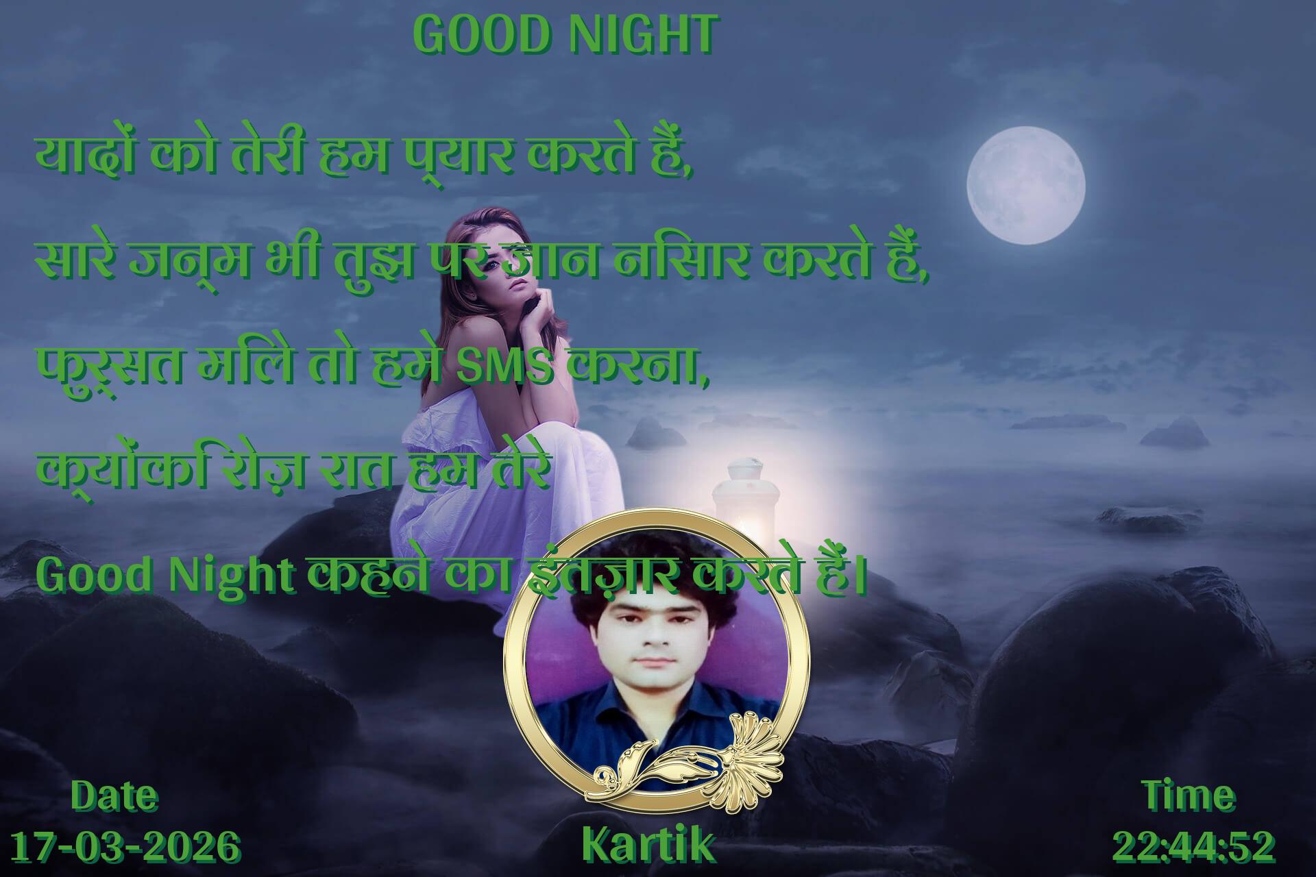 यादों को तेरी हम प्यार करते हैं, सारे जन्म भी तुझ पर जान निसार करते हैं, फुर्सत मिले तो हमे SMS करना, क्योंकि रोज़ रात हम तेरे Good Night कहने का इंतज़ार करते हैं।