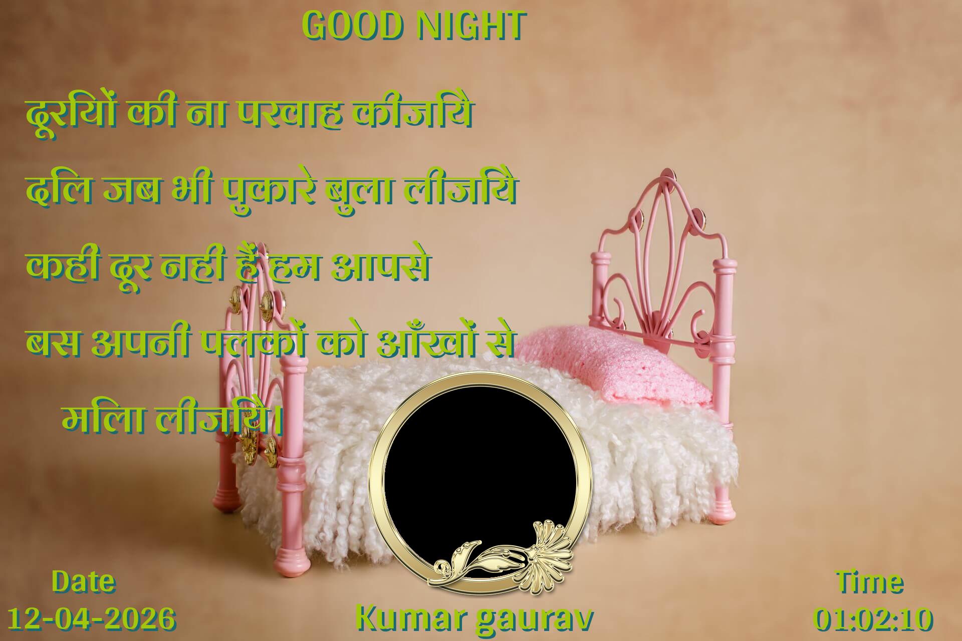 दूरियों की ना परवाह कीजिये दिल जब भी पुकारे बुला लीजिये कहीं दूर नहीं हैं हम आपसे बस अपनी पलकों को आँखों से मिला लीजिये।
