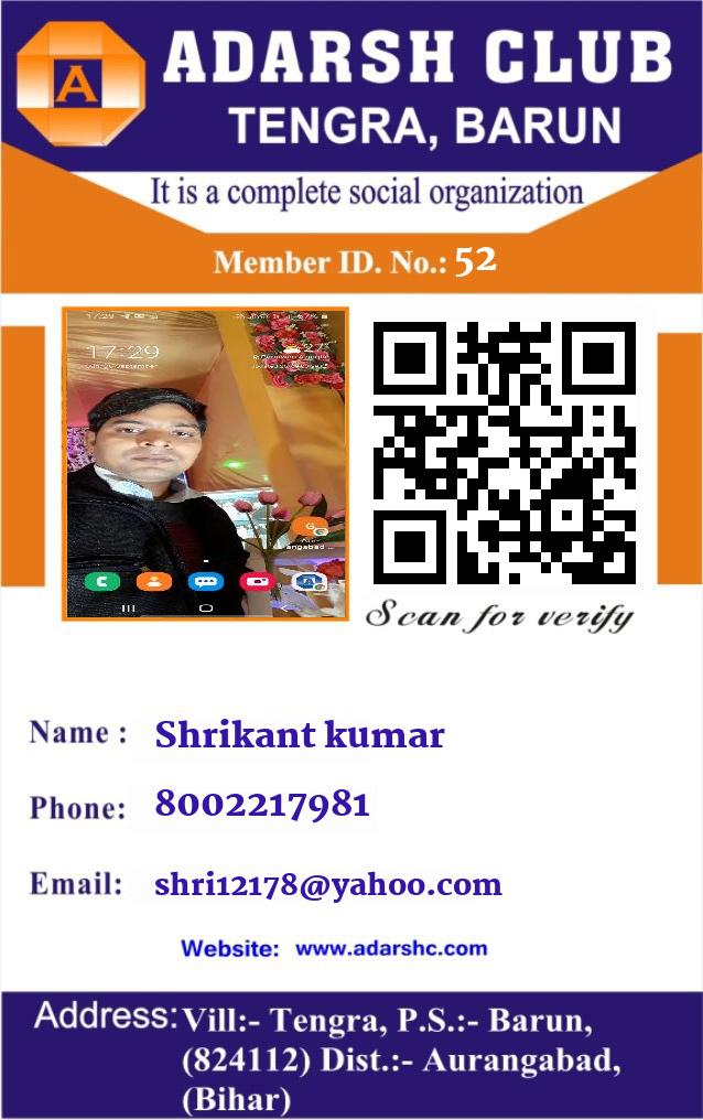 😀 Shrikant kumar 👉 ADARSH CLUB का सदस्य है!
