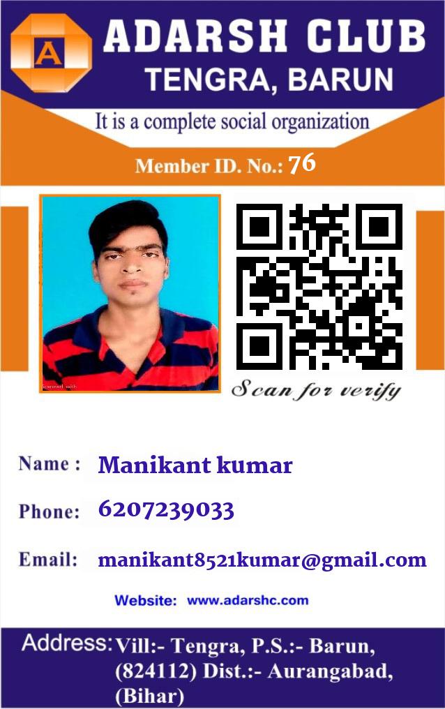 😀 Manikant kumar 👉 ADARSH CLUB का सदस्य है!